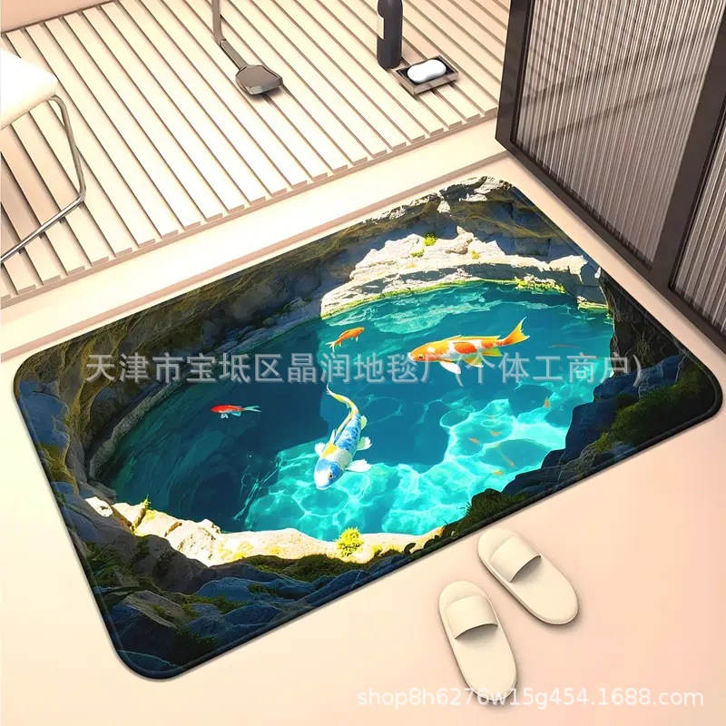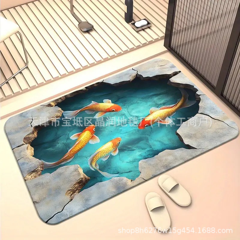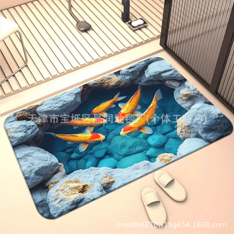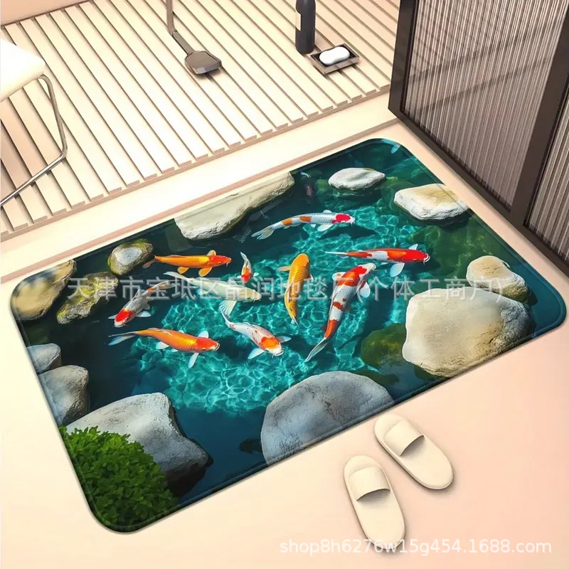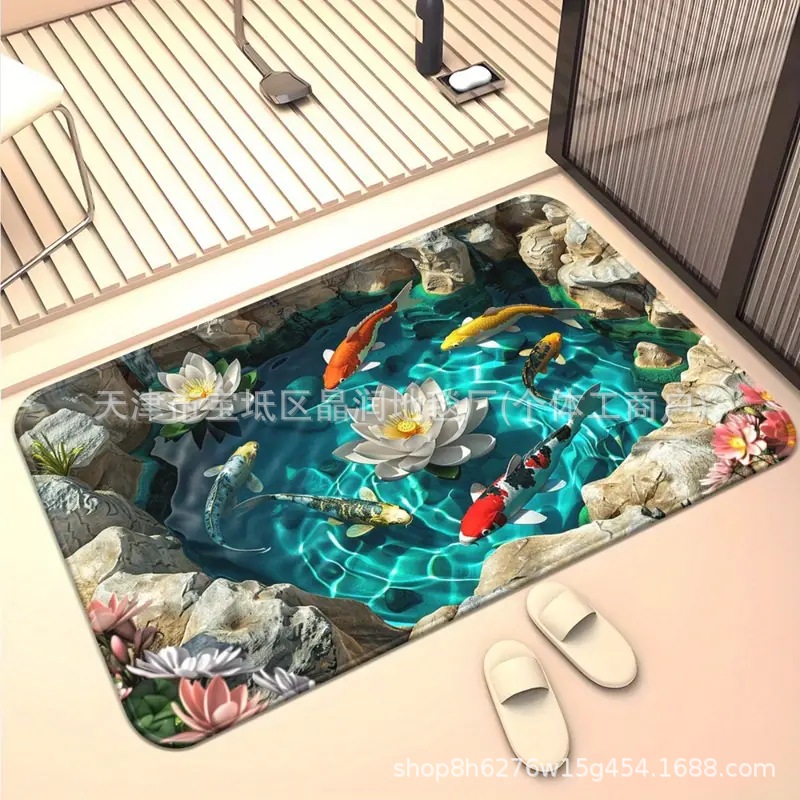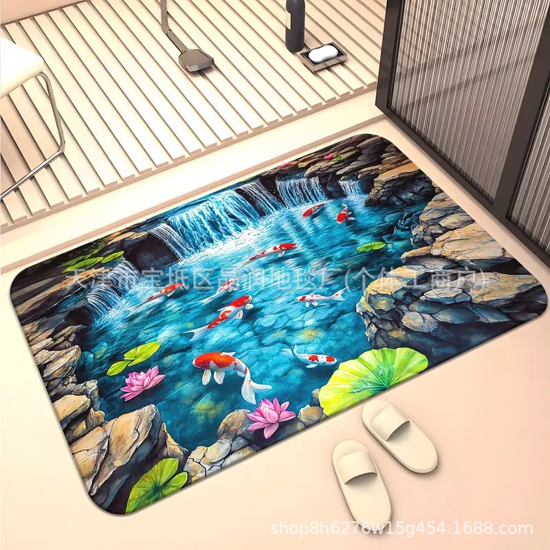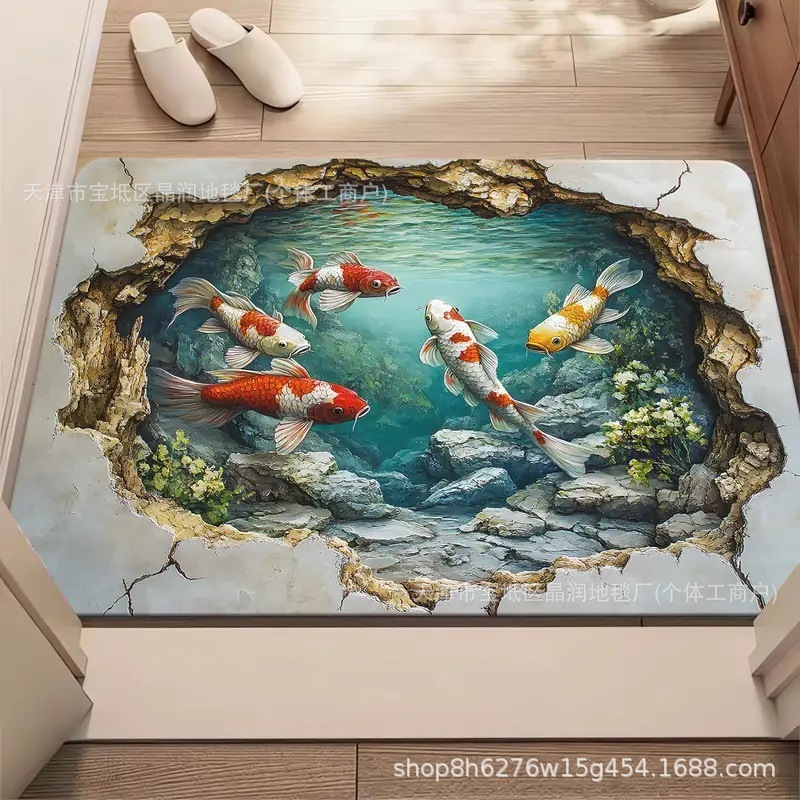 Temu Amazon 베스트셀러 3D 잉어 트랩 바닥 매트 입구 현관 간편한 관리 도어 매트 욕실 흡수성 발 매트스토어 가기