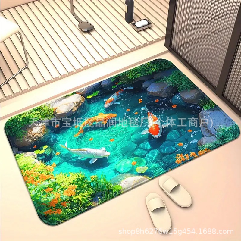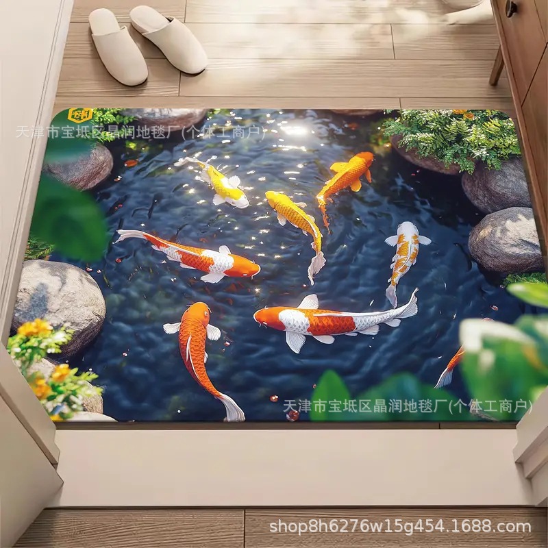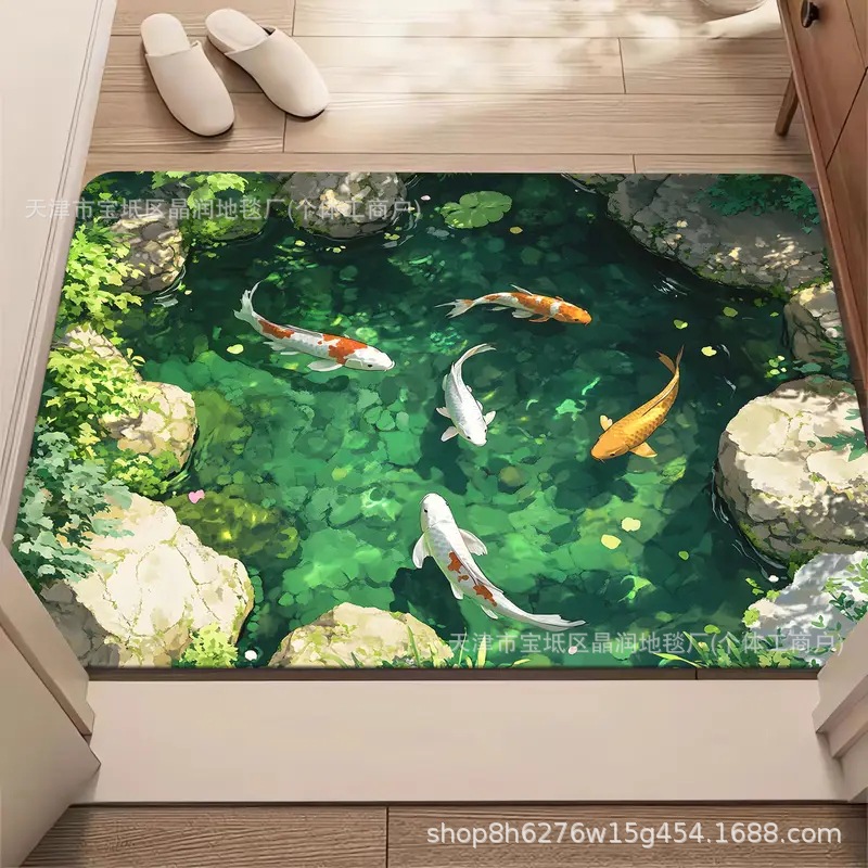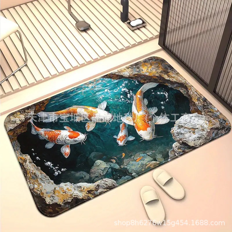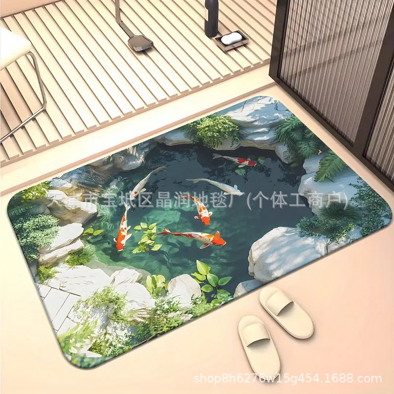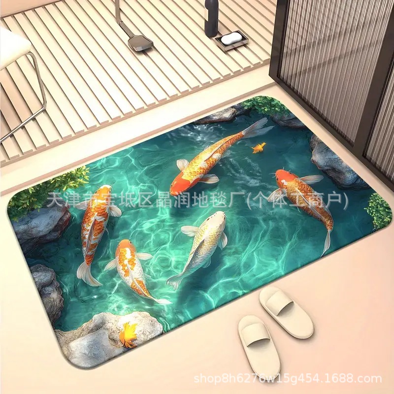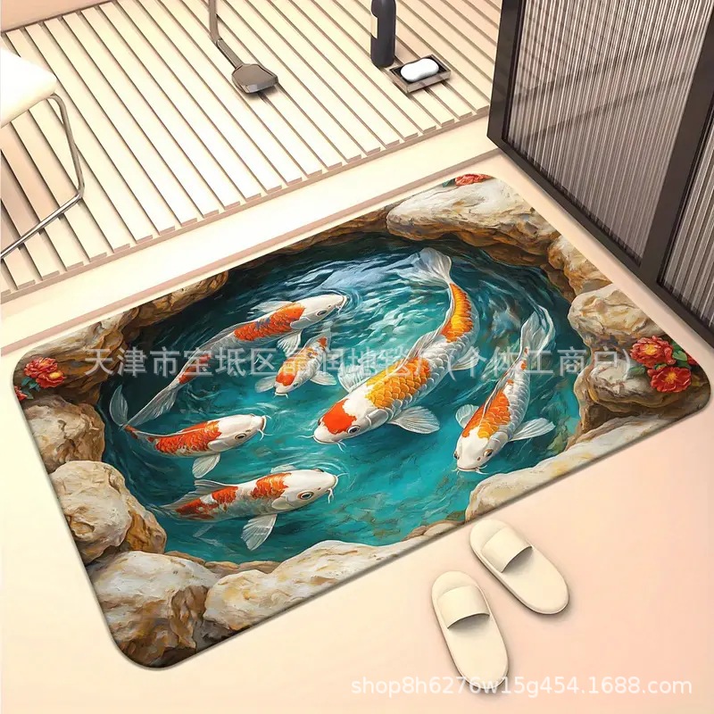 Temu Amazon 베스트셀러 3D 잉어 트랩 바닥 매트 입구 현관 간편한 관리 도어 매트 욕실 흡수성 발 매트스토어 가기