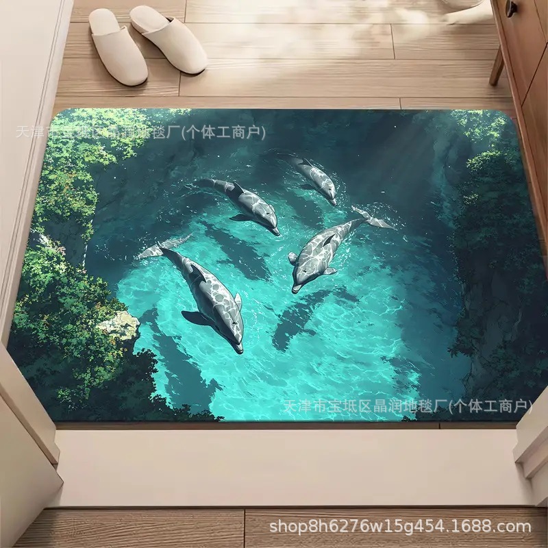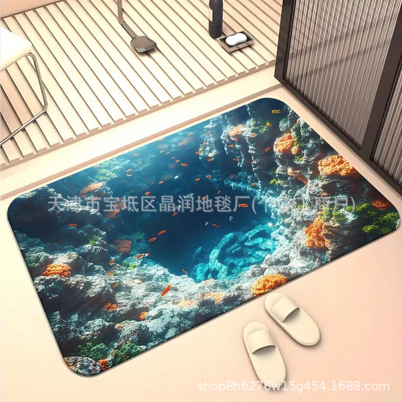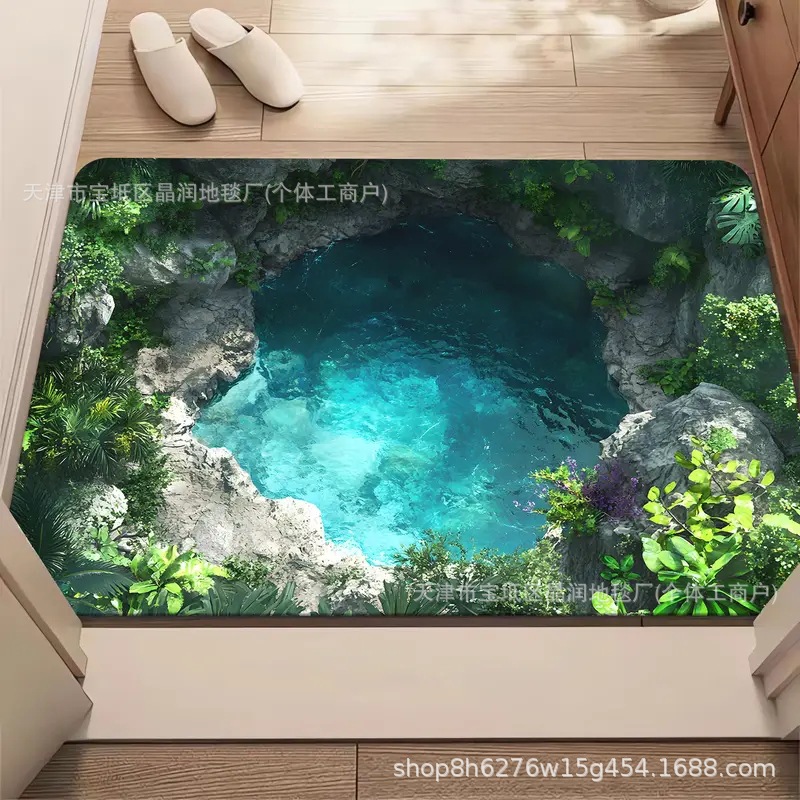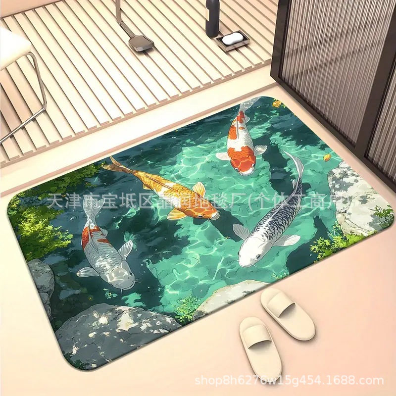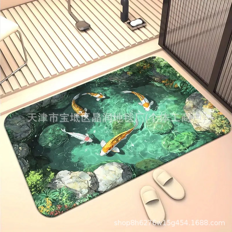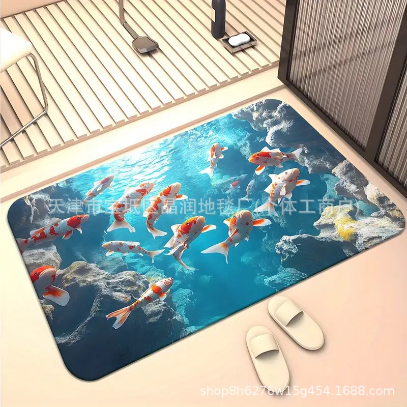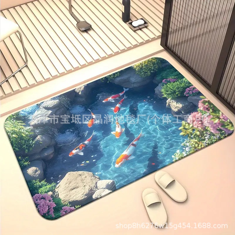 Temu Amazon 베스트셀러 3D 잉어 트랩 바닥 매트 입구 현관 간편한 관리 도어 매트 욕실 흡수성 발 매트스토어 가기