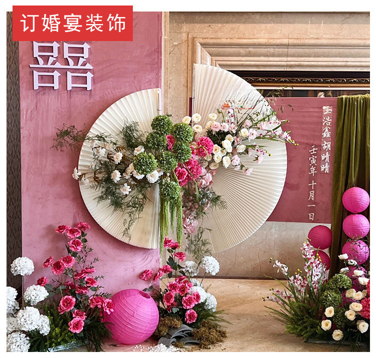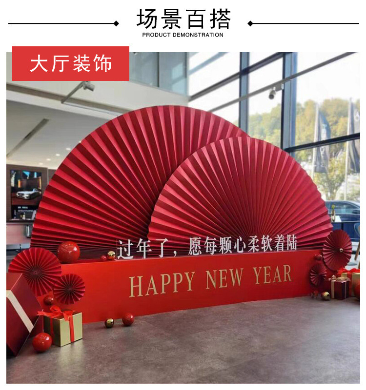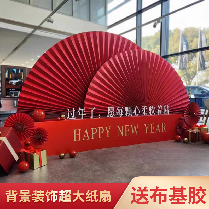 装饰布置婚庆加厚红色新中式折扇订婚纸扇结婚工艺纸背景超大折纸