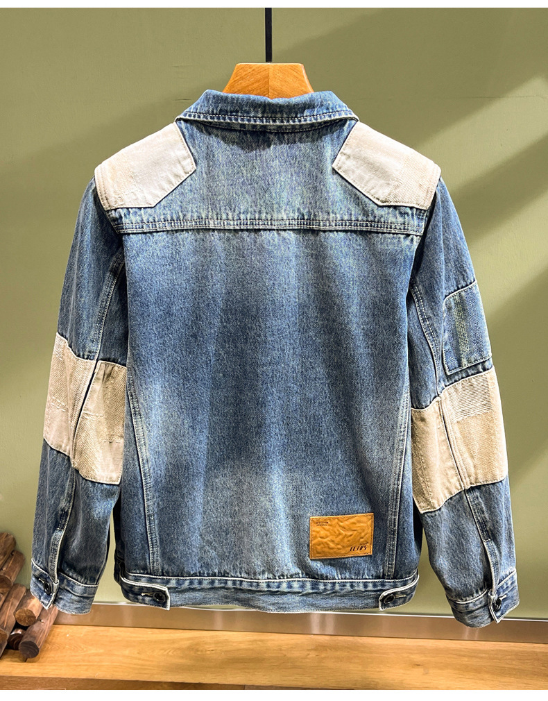 유럽과 미국의 복고풍 라이트 럭셔리 자수 데님 재킷 남성 봄, 가을 유행 브랜드 스트리트 잘 생긴 클래식 다용도 슬림 재킷스토어 가기