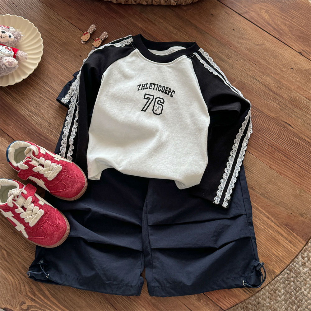 어린이 스타 라운드 달콤한 소녀 정장 가을 만화 인쇄 긴팔 티셔츠 유행 캐주얼 스포츠 투피스 세트 새로운 스타일스토어 가기