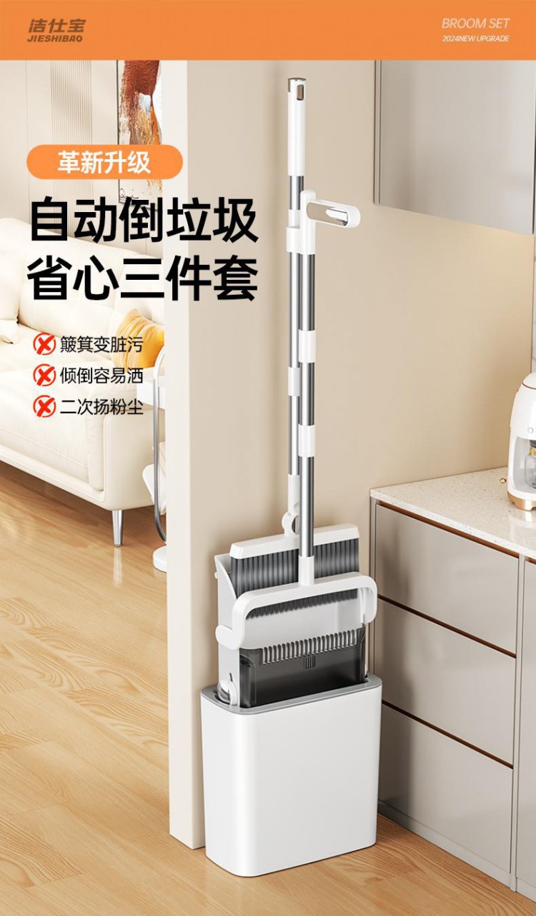 Jiesibao 빗자루와 쓰레받기 세트 가정용 청소 빗자루 고품질 빗자루 쓰레기통 3피스 세트 와이퍼