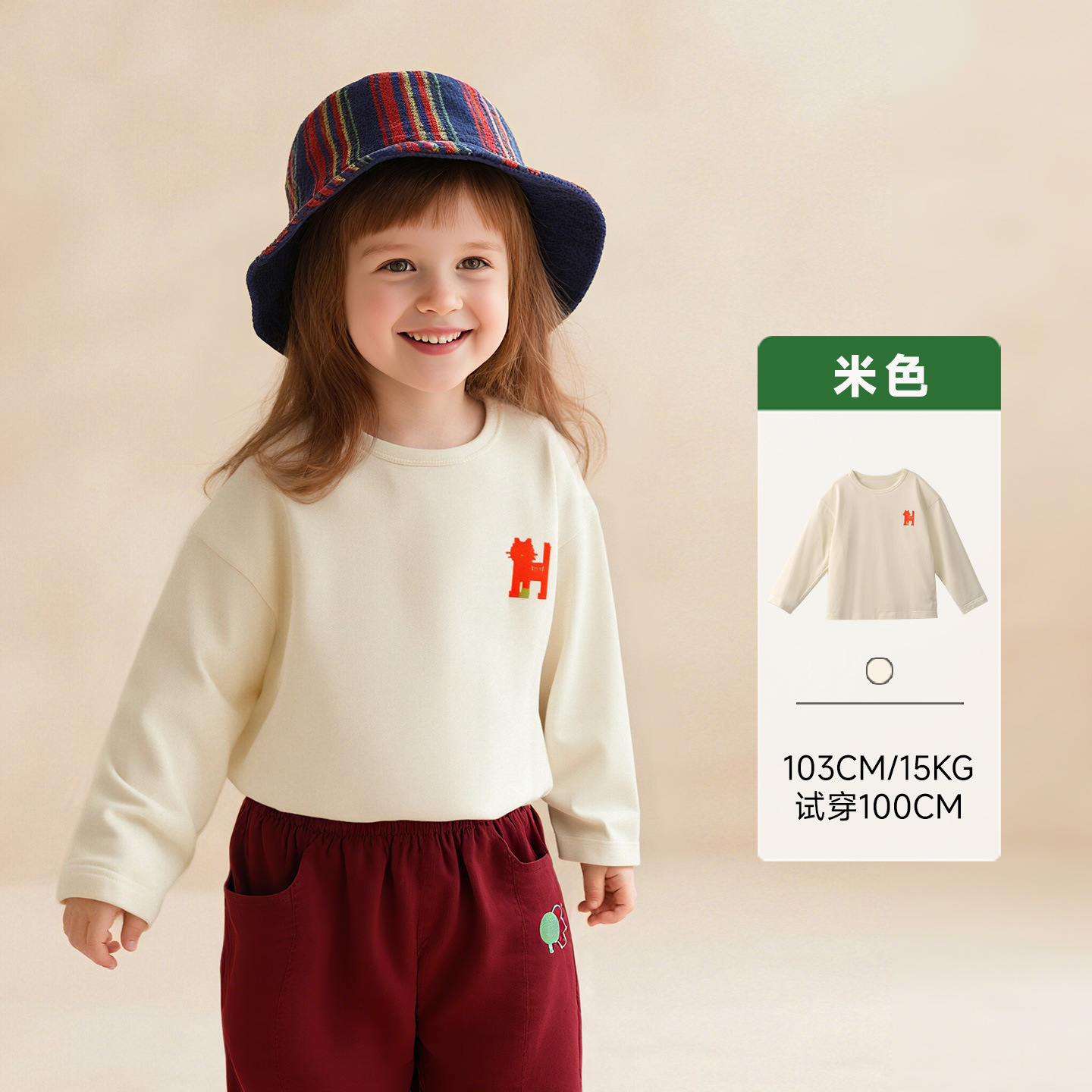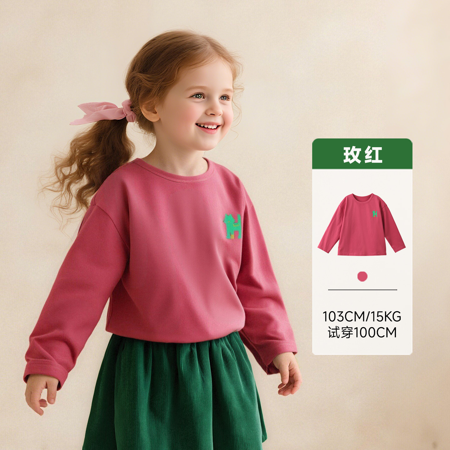 Tongbei 티셔츠 소년과 소녀를위한 가을 새로운 스타일 라운드 넥 긴팔 솔리드 컬러 만화 캐주얼 다목적 탑