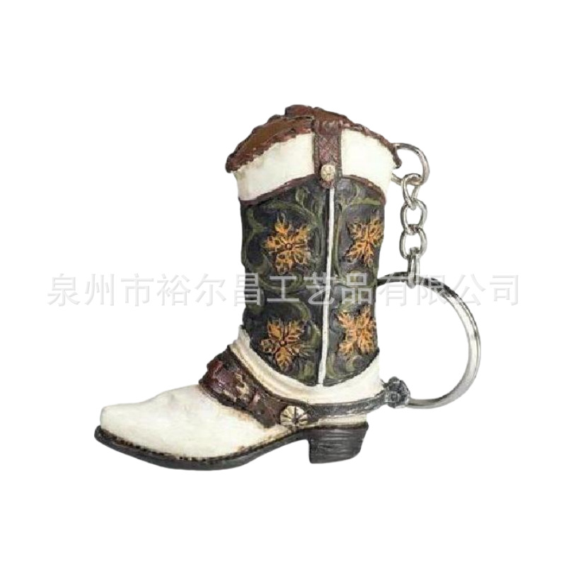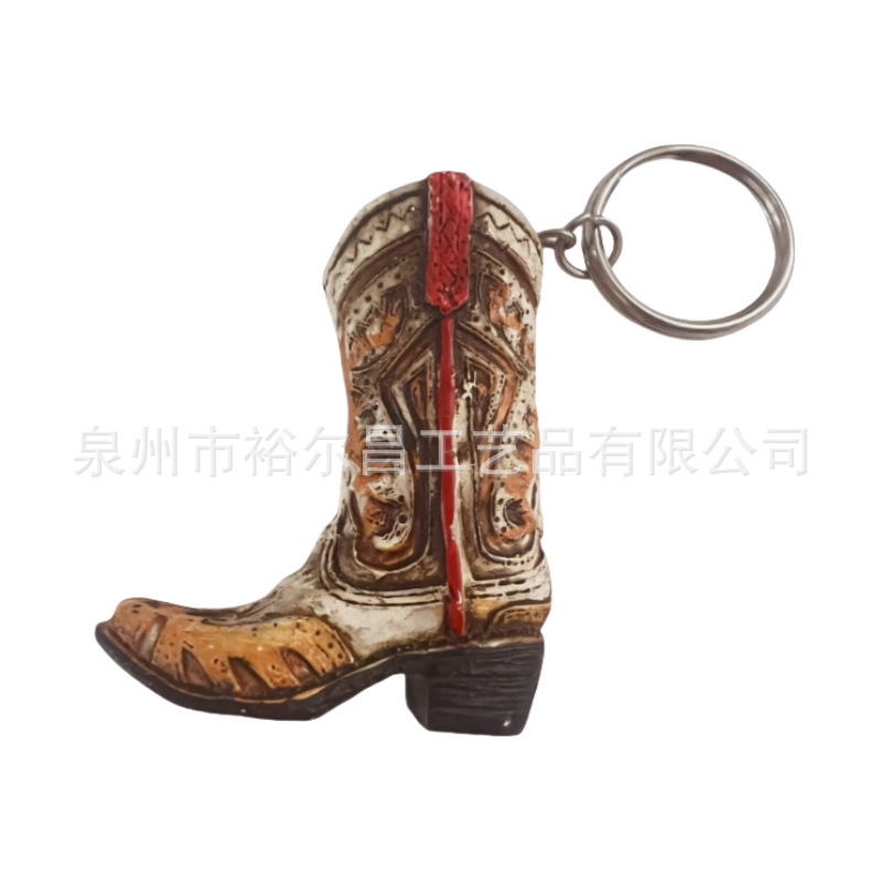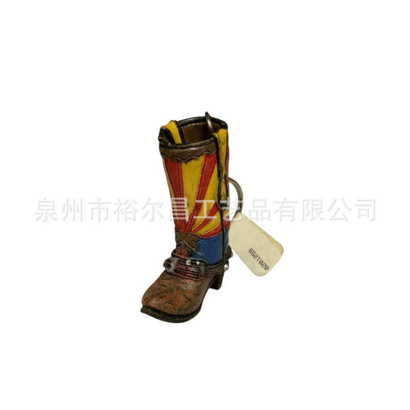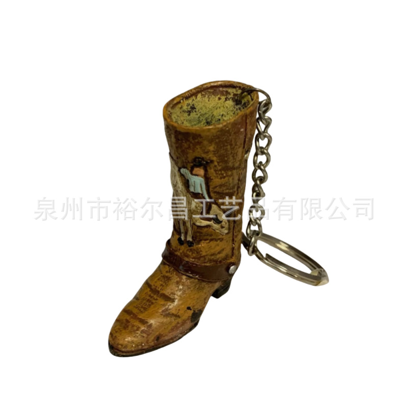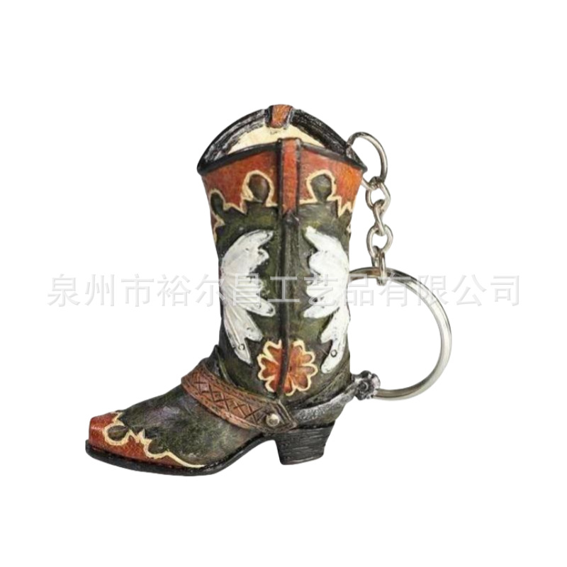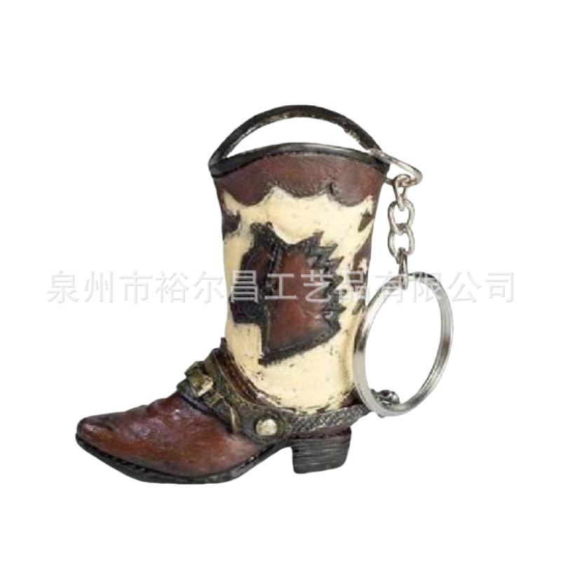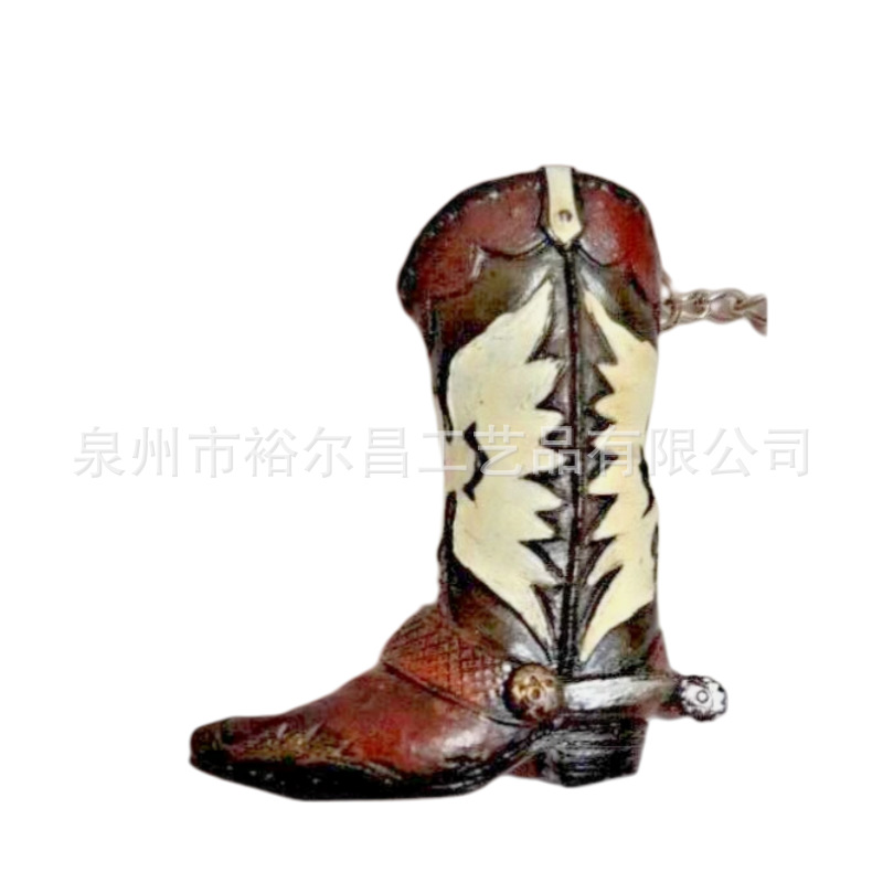 树脂美国西部牛仔靴子钥匙扣小雕像小摆件
