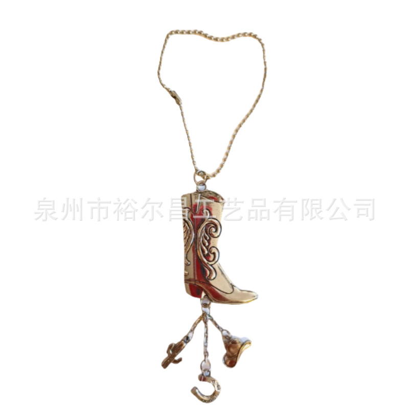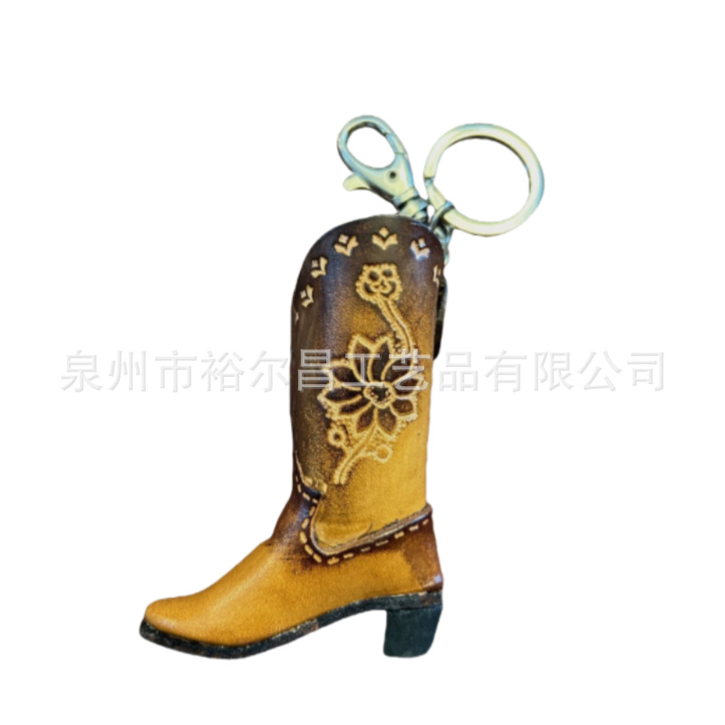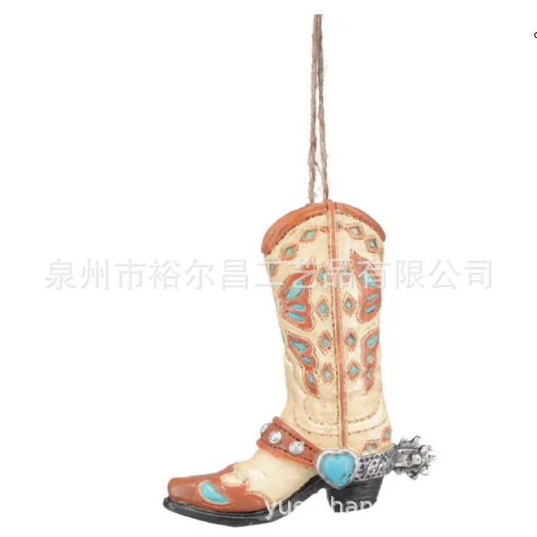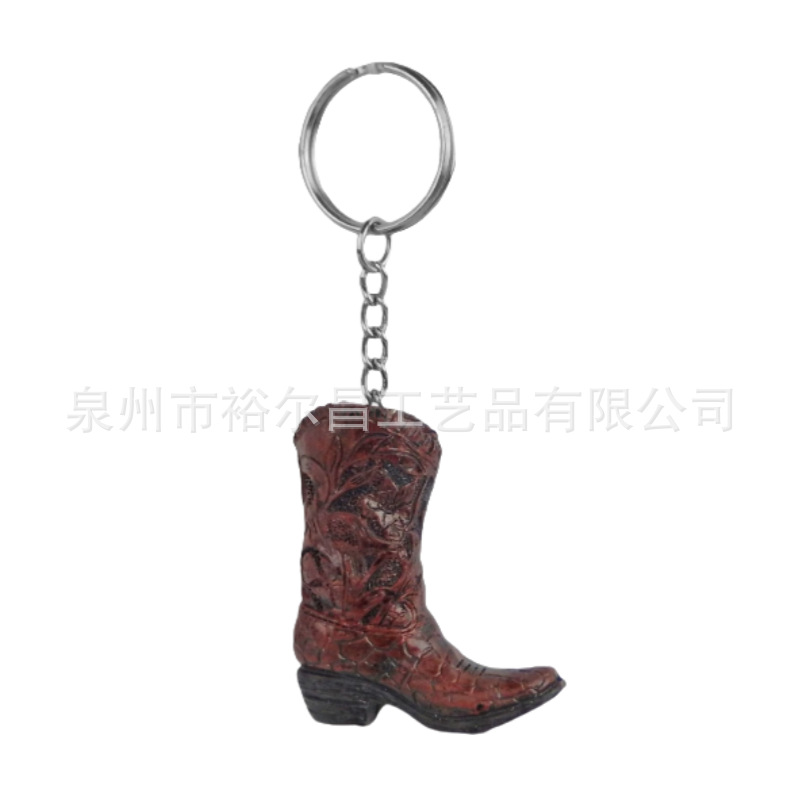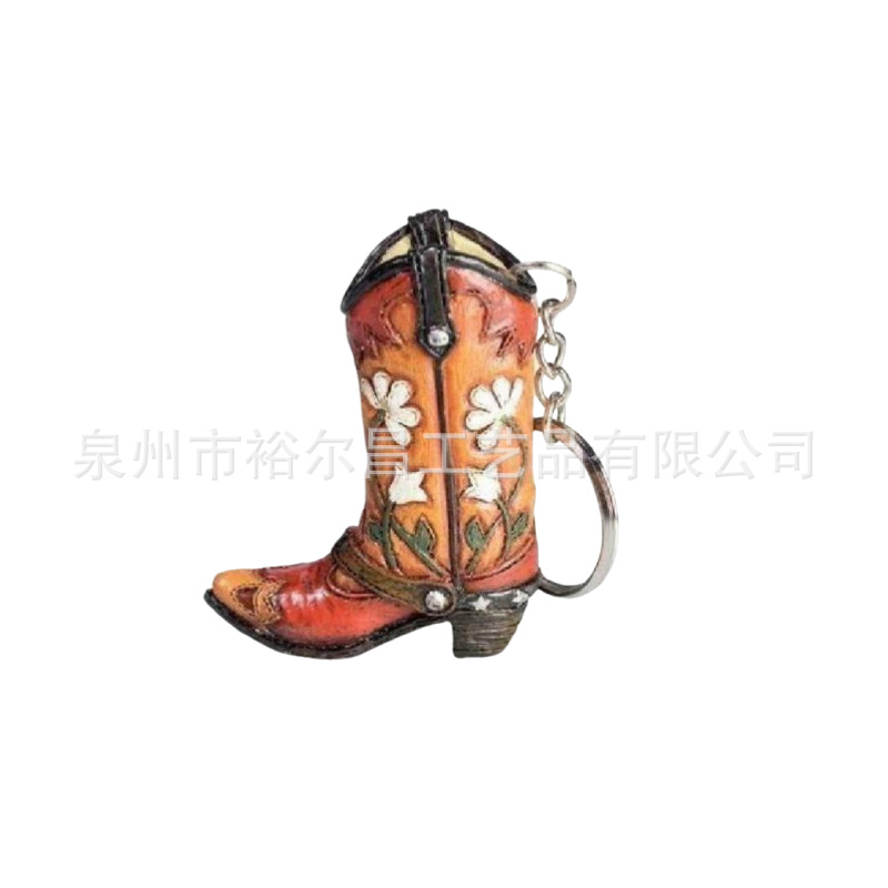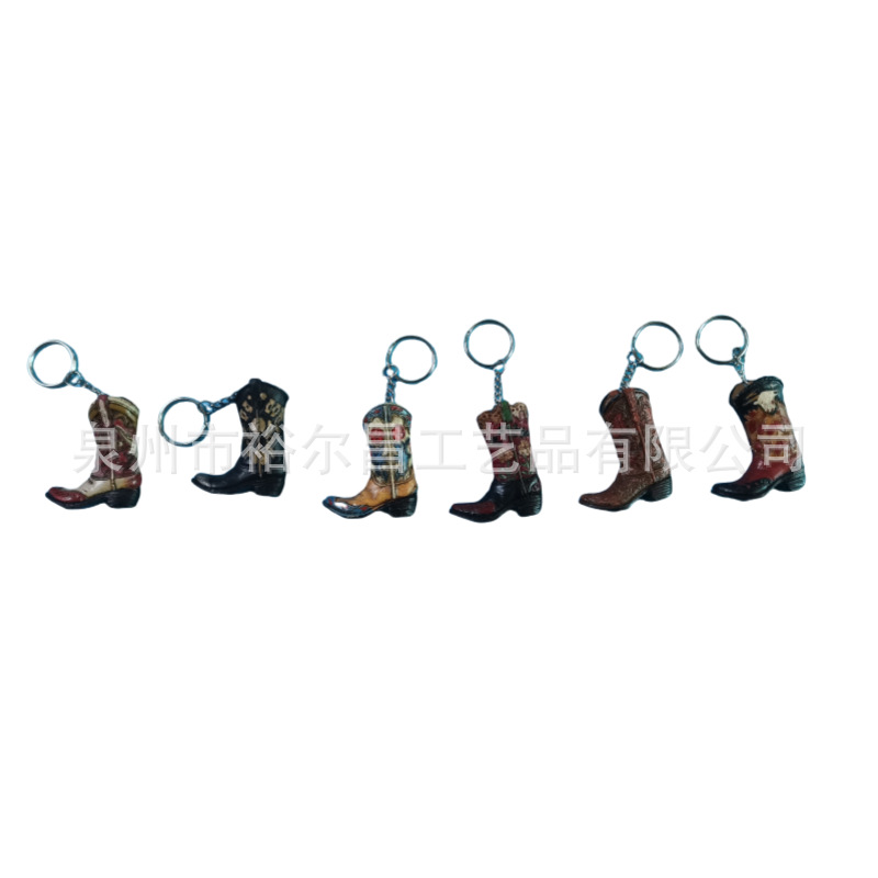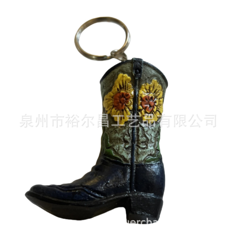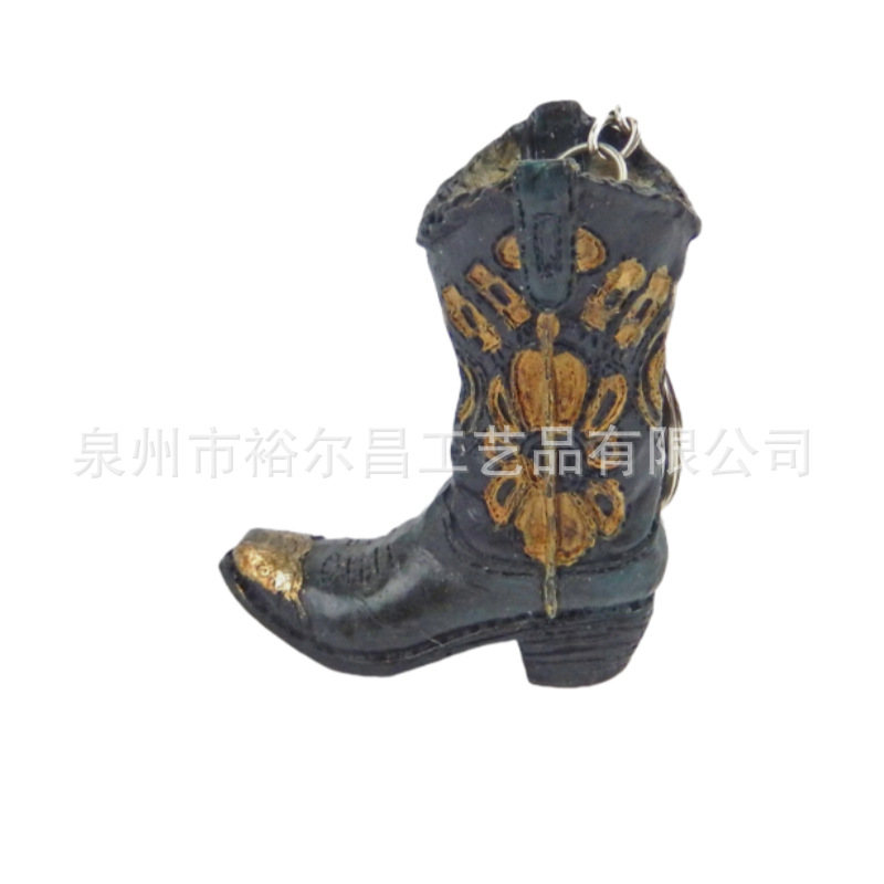 树脂美国西部牛仔靴子钥匙扣小雕像小摆件