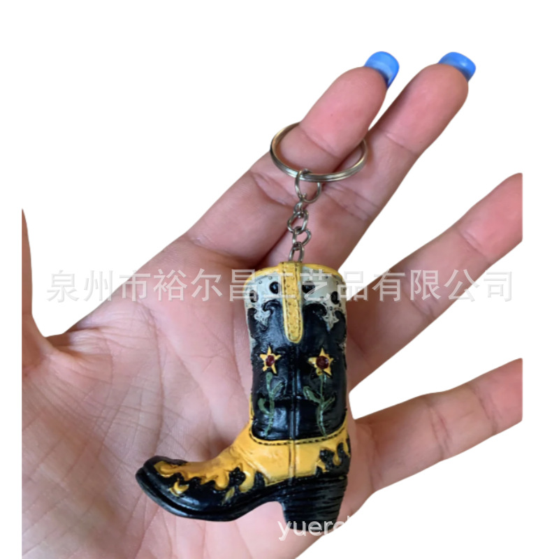 수지 미국 서부 카우보이 부츠 열쇠 고리 작은 입상 작은 장식품 서양 부츠 열쇠 고리