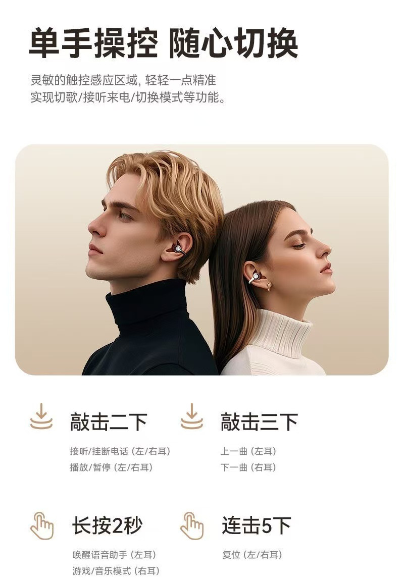 Shanshui 블루투스 헤드셋 이어 클립 AI 지능형 번역 W105 새로운 오픈형 소음 방지 스포츠 슈퍼 긴 배터리 수명