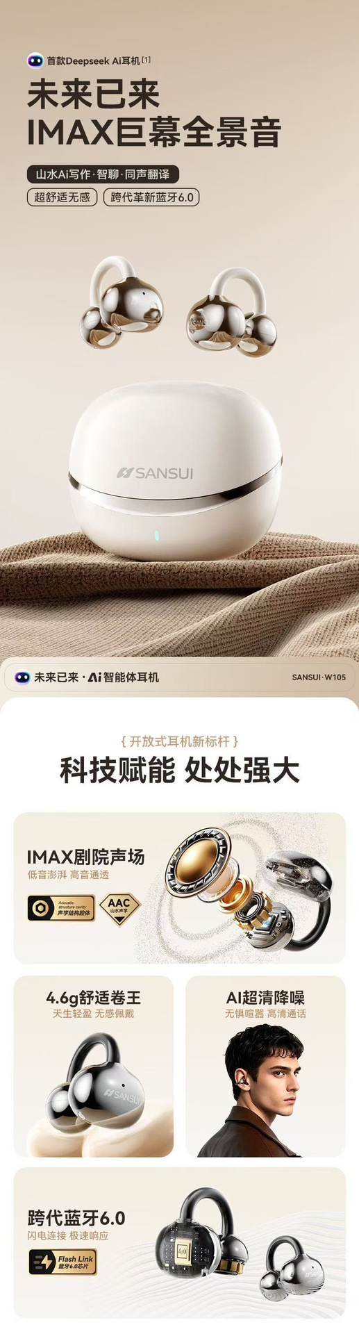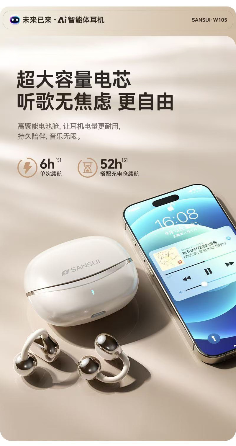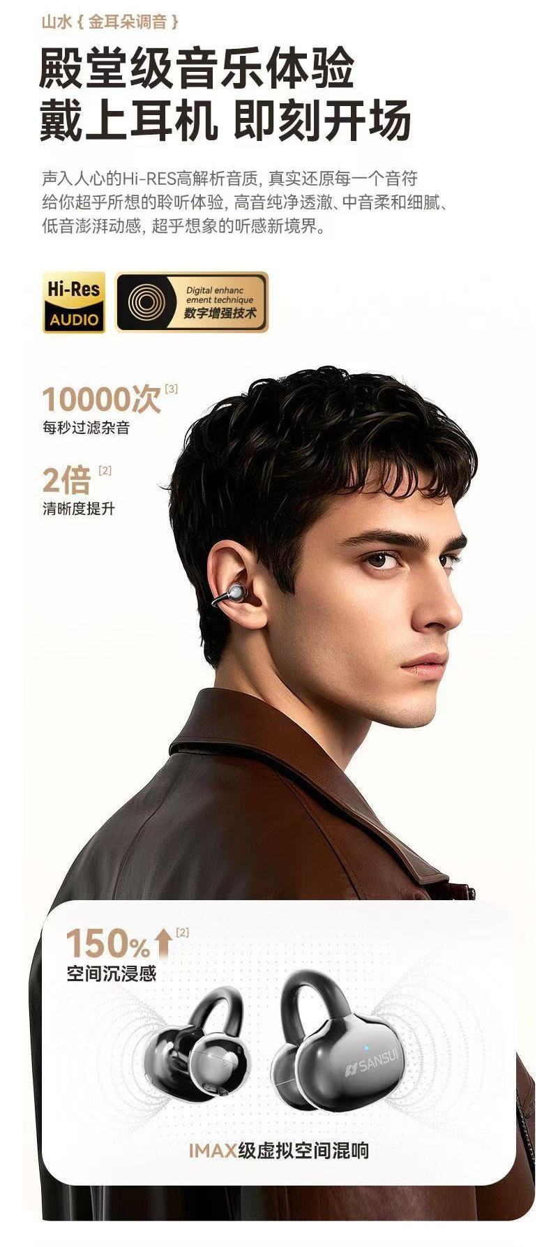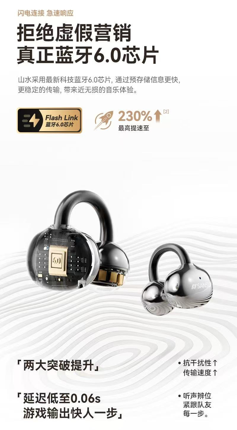 Shanshui 블루투스 헤드셋 이어 클립 AI 지능형 번역 W105 새로운 오픈형 소음 방지 스포츠 슈퍼 긴 배터리 수명스토어 가기
