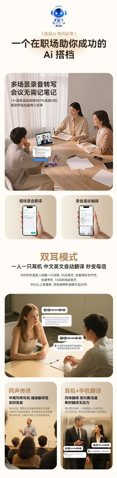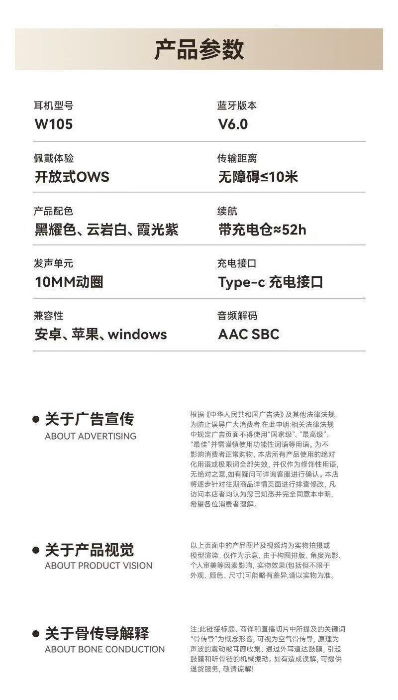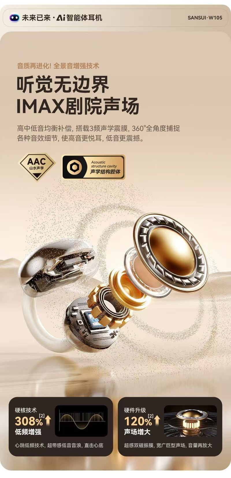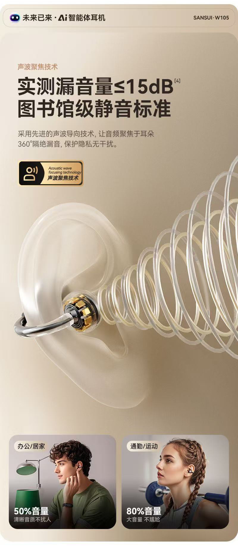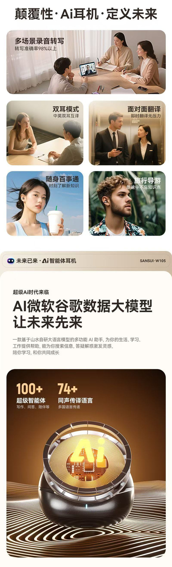 Shanshui 블루투스 헤드셋 이어 클립 AI 지능형 번역 W105 새로운 오픈형 소음 방지 스포츠 슈퍼 긴 배터리 수명스토어 가기
