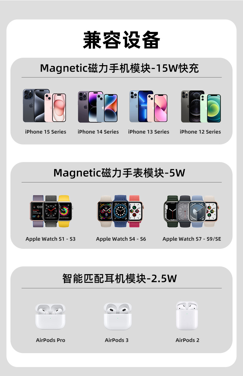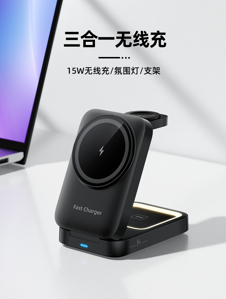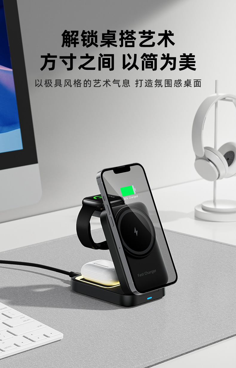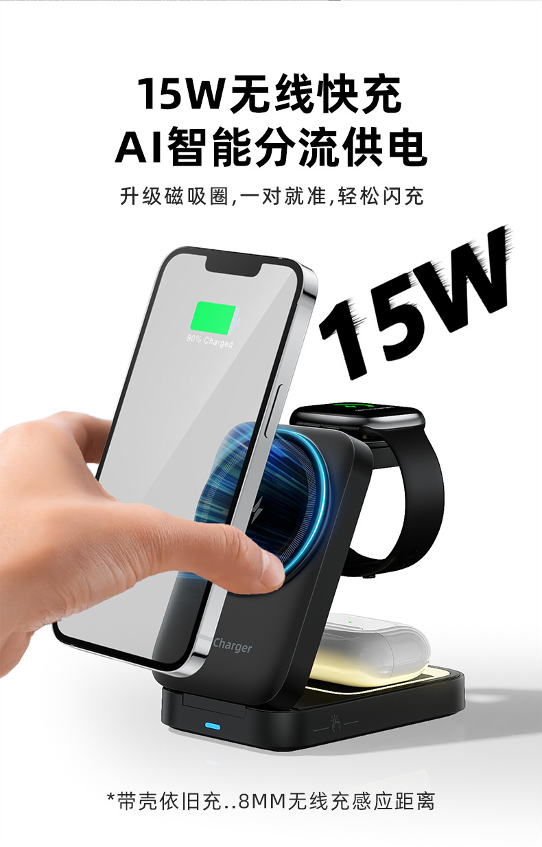 무선 충전기 Apple 휴대폰에 적합한 3-in-1 자기 무선 충전기 무선 충전 자기 휴대폰 홀더