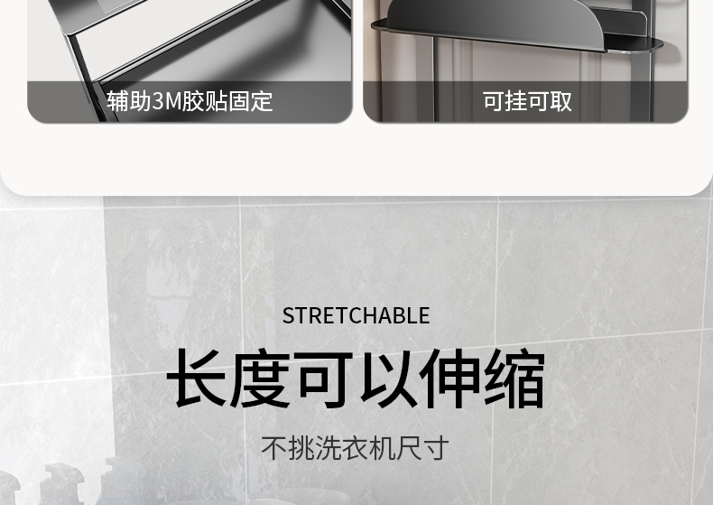 • [건그레이 확장모델] 텔레스코픽 상단 수납선반 51.3-95cm 업그레이드된 구조 + 접착제