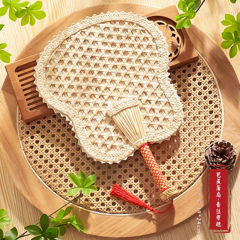 • 작은 바나나 부채(술로 엮은 가장자리)