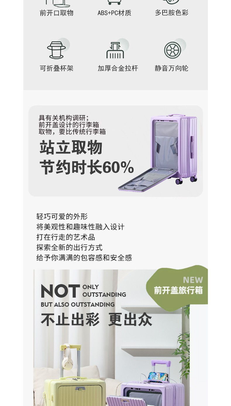 전면 개방형 여행 가방 다기능 트롤리 케이스 남성용 24inch 대용량 여행 20inch 여성용 탑승 가방 여행 가방스토어 가기