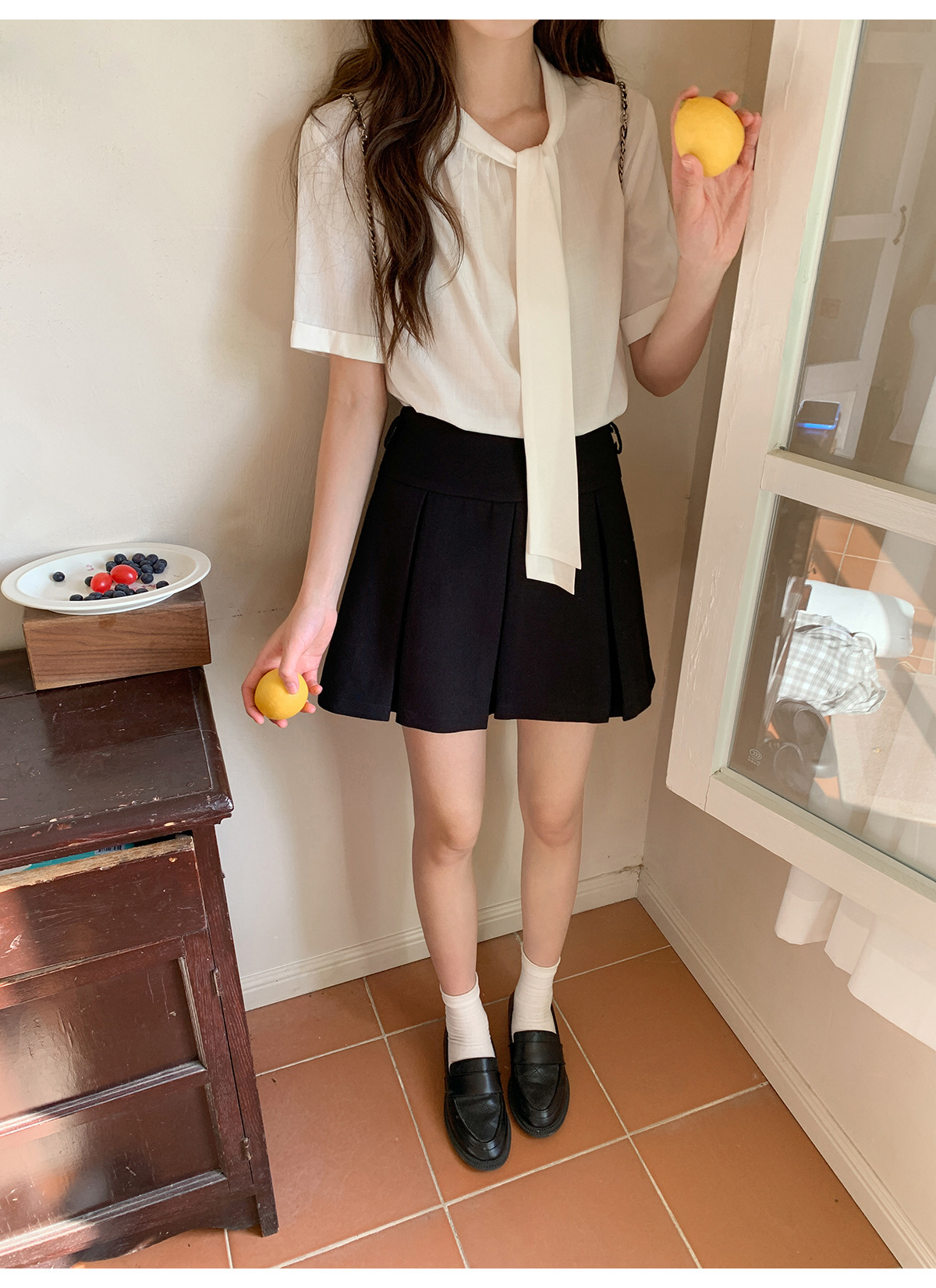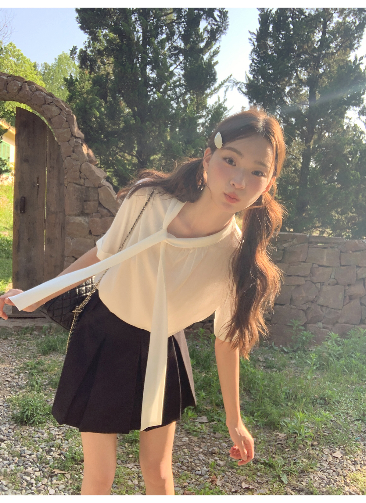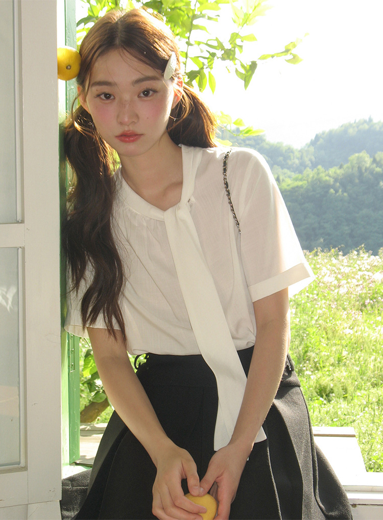 흰색 넥타이 반팔 셔츠 여성 여름 여성 셔츠 간단한 통근 리본 탑