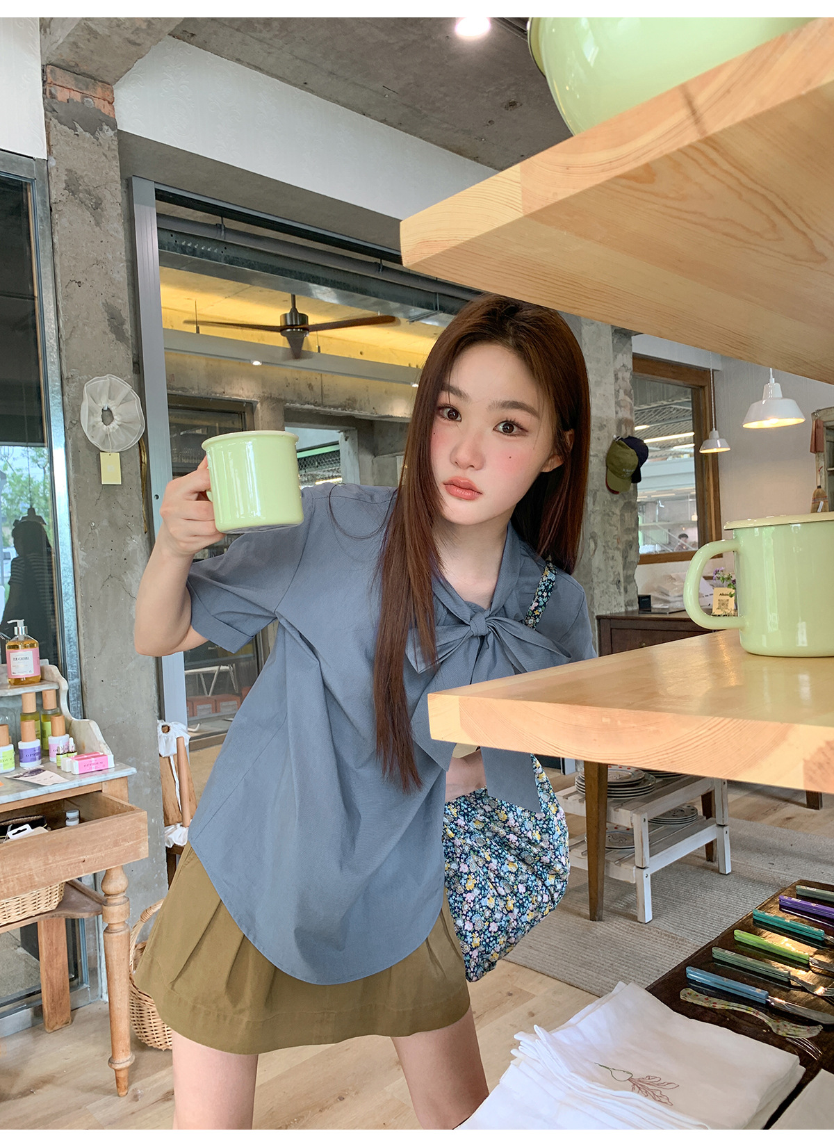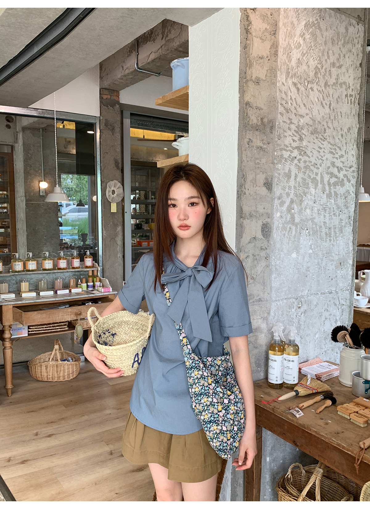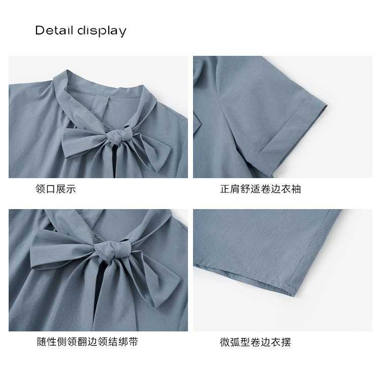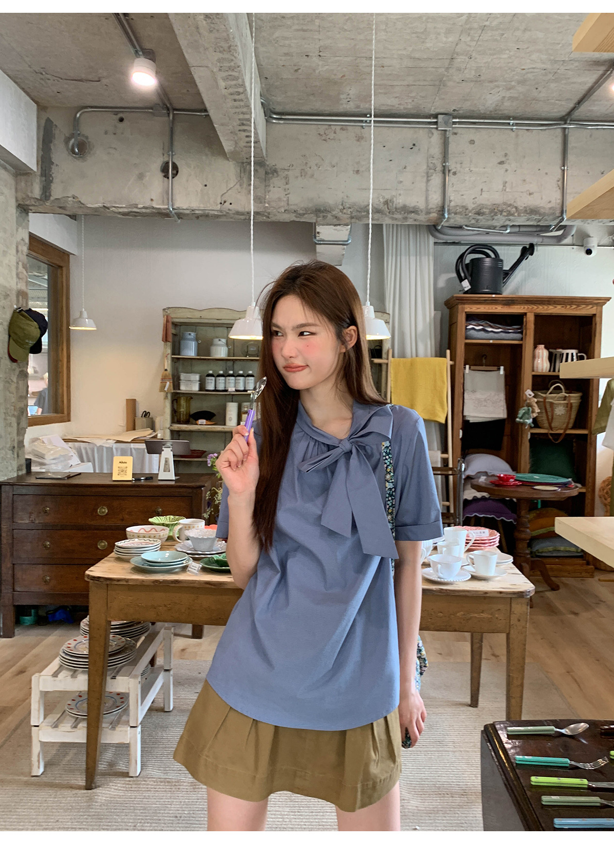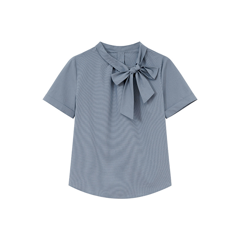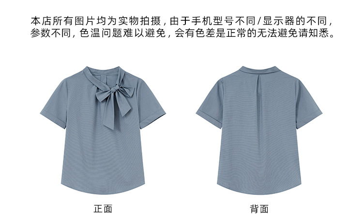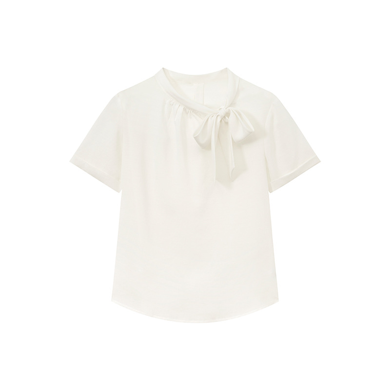 흰색 넥타이 반팔 셔츠 여성 여름 여성 셔츠 간단한 통근 리본 탑스토어 가기