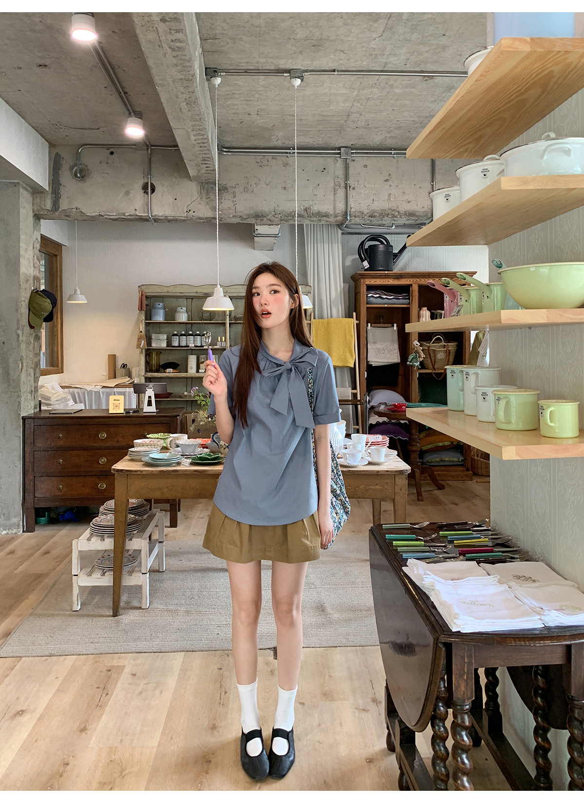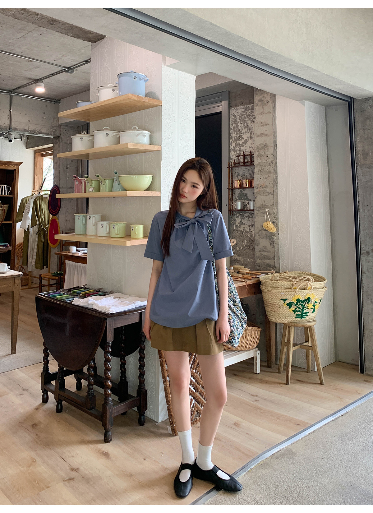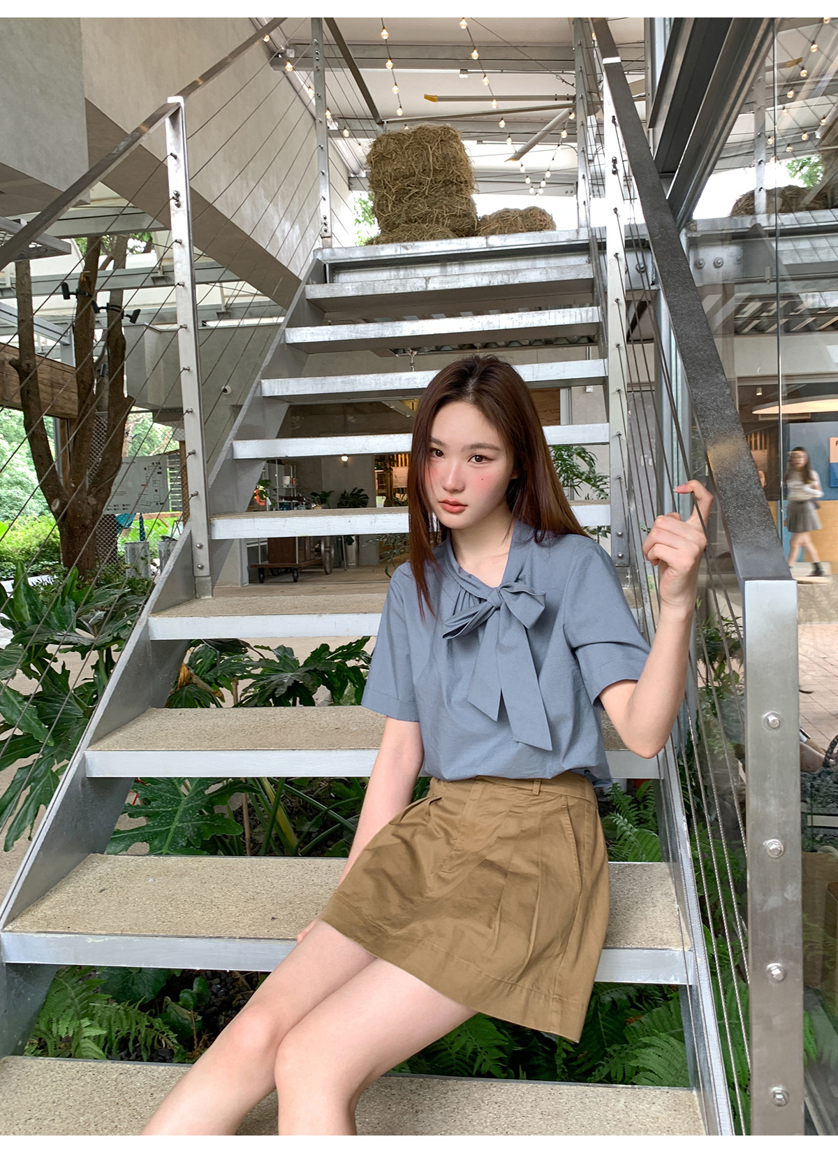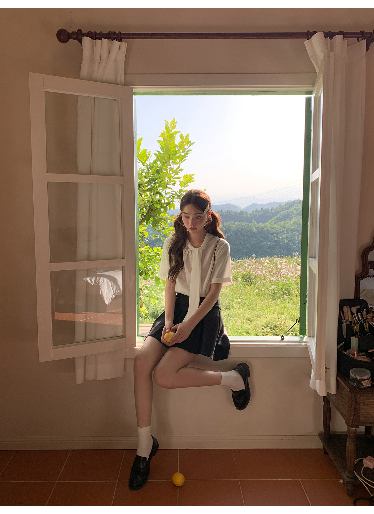 흰색 넥타이 반팔 셔츠 여성 여름 여성 셔츠 간단한 통근 리본 탑스토어 가기