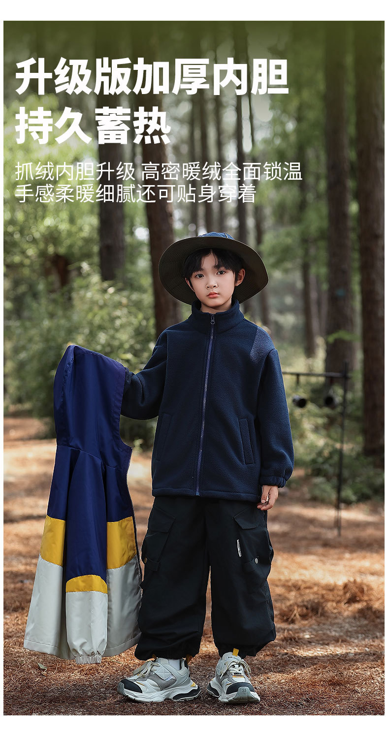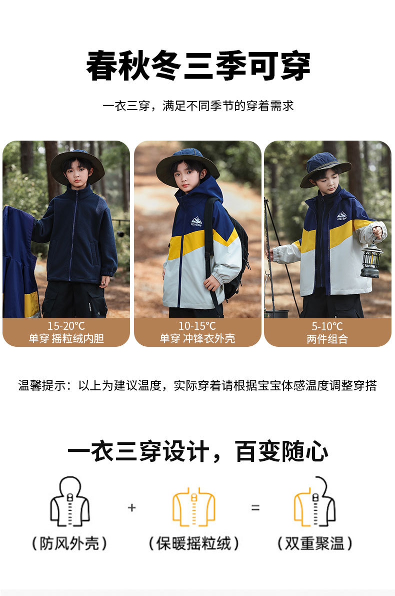 소년 재킷 3-in-one 분리형 가을, 겨울 의류 2025 새로운 중대형 어린이 야외 윈드 브레이커 등산 의류스토어 가기