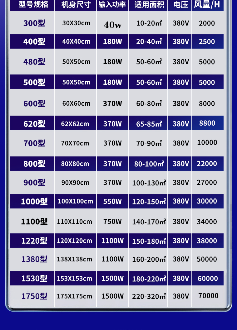 • 1000형 380V [두꺼운 스테인리스 팬 블레이드 모델]