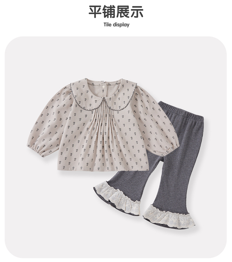 2025 새로운 가을 스타일 유아 및 유아 풀 프린트 인형 셔츠 니트 바지 투피스 세트 아기 소녀 한국 스타일 유행 정장스토어 가기
