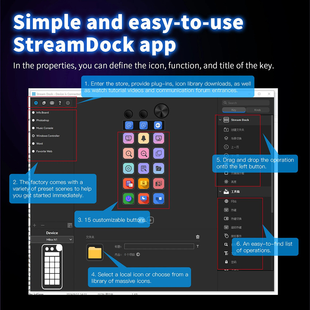 N1 국제 버전 Streamdeck 노브 시각적 사용자 정의 프로그래밍 가능 키보드 라이브 방송 다기능 콘솔