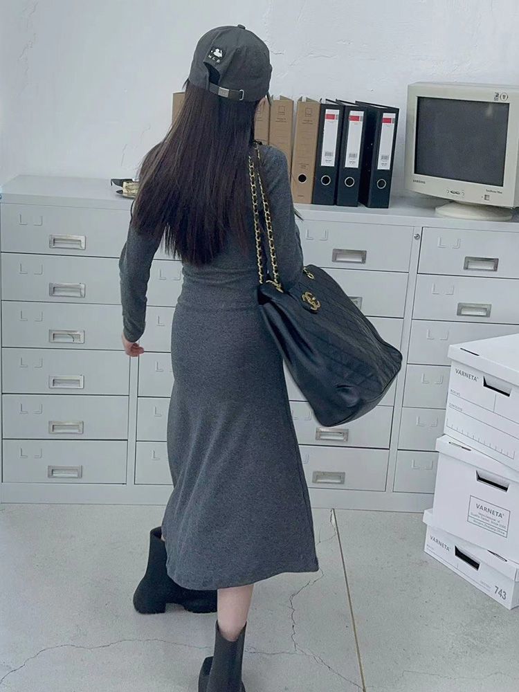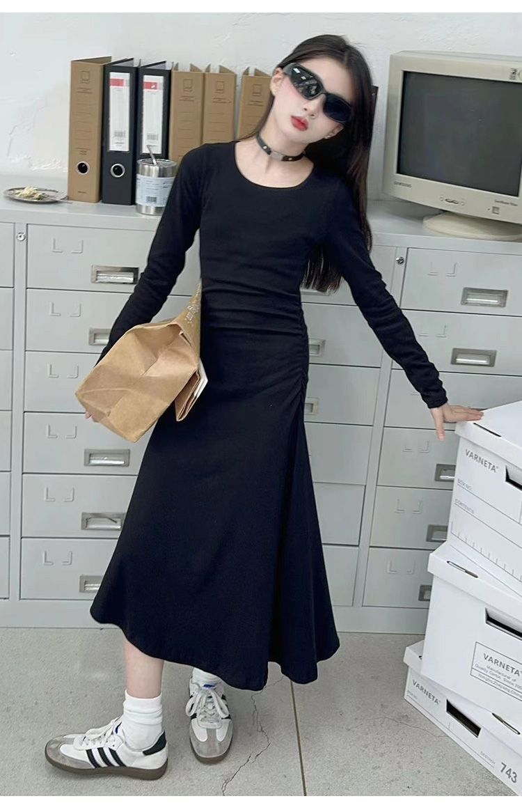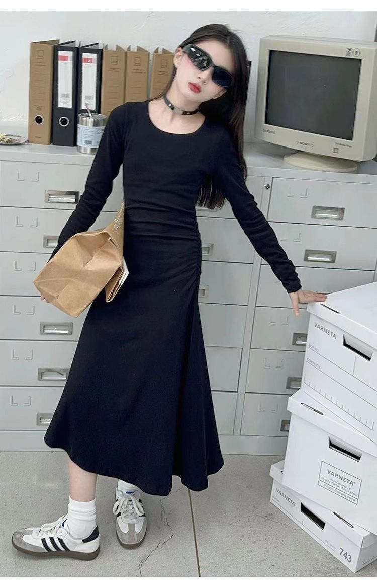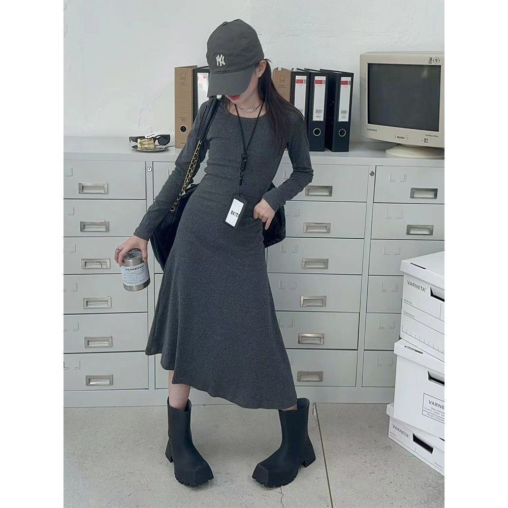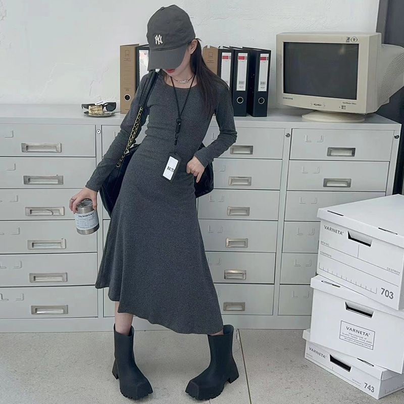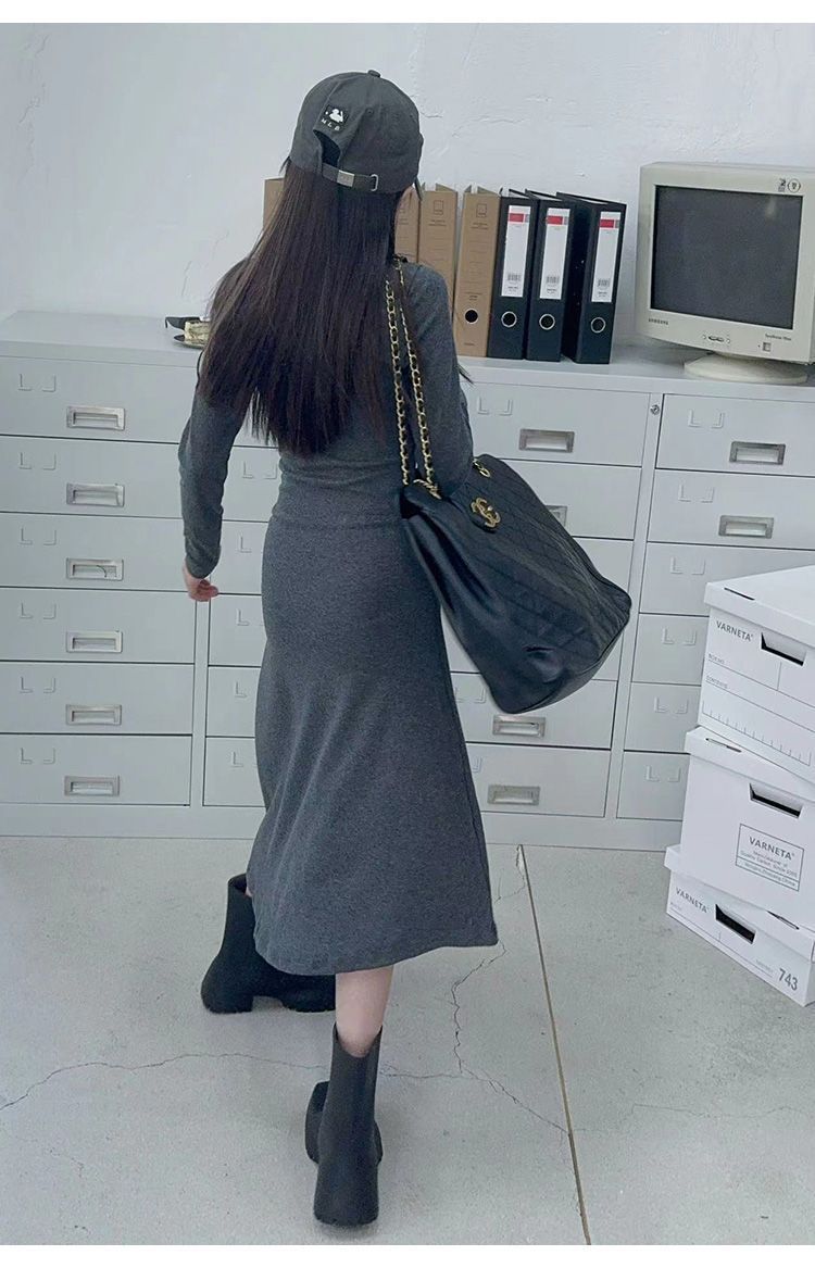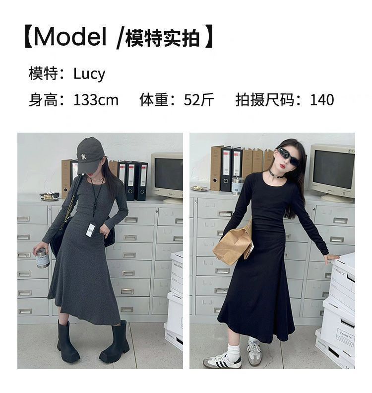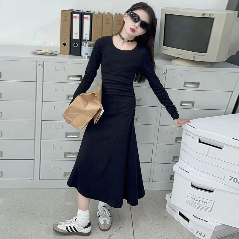 한국 스타일 여아 드레스 중간 길이 봄, 가을 긴팔 중대형 아동 슬림핏 스커트 겨울 어린 소녀 피쉬테일 스커트스토어 가기