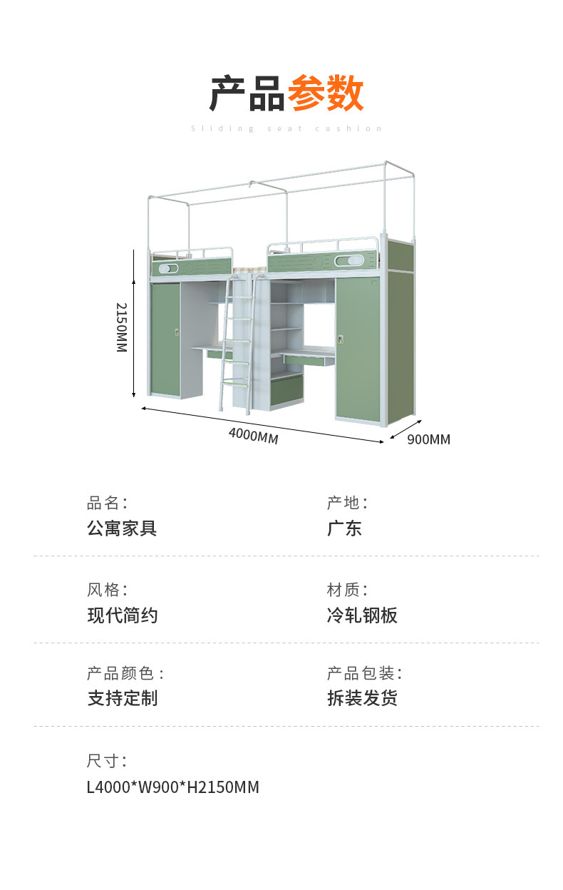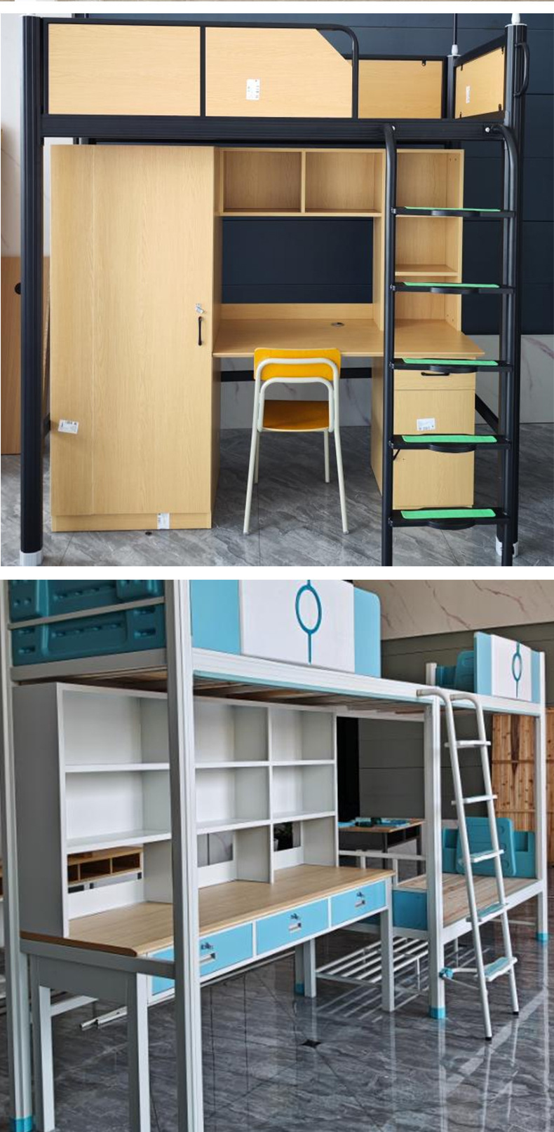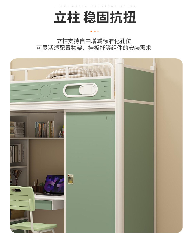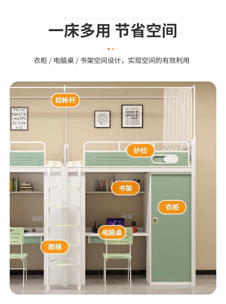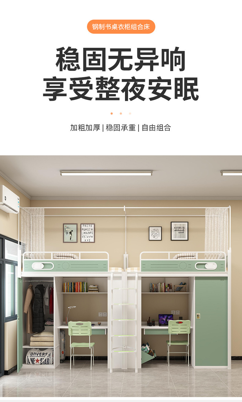 침대와 테이블 아래 학생 기숙사 철제 침대 높낮이 침대 결합 이층 침대 아파트 다기능 하부 캐비닛 분리 가능