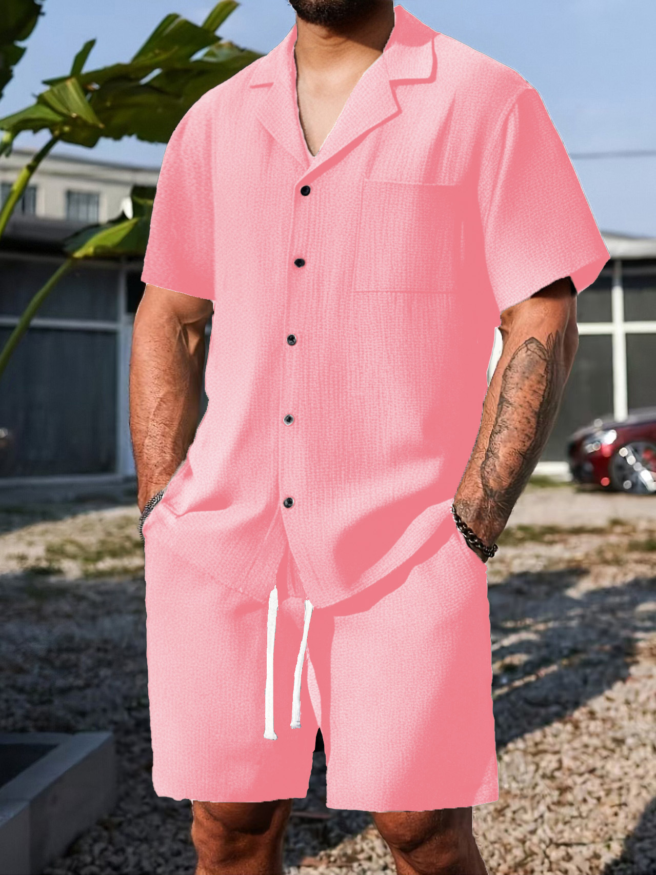 여름 신제품 AliExpress 유럽과 미국의 국경 간 남성 폴로 캐주얼 루즈 반팔 반바지 솔리드 컬러 스포츠 슈트
