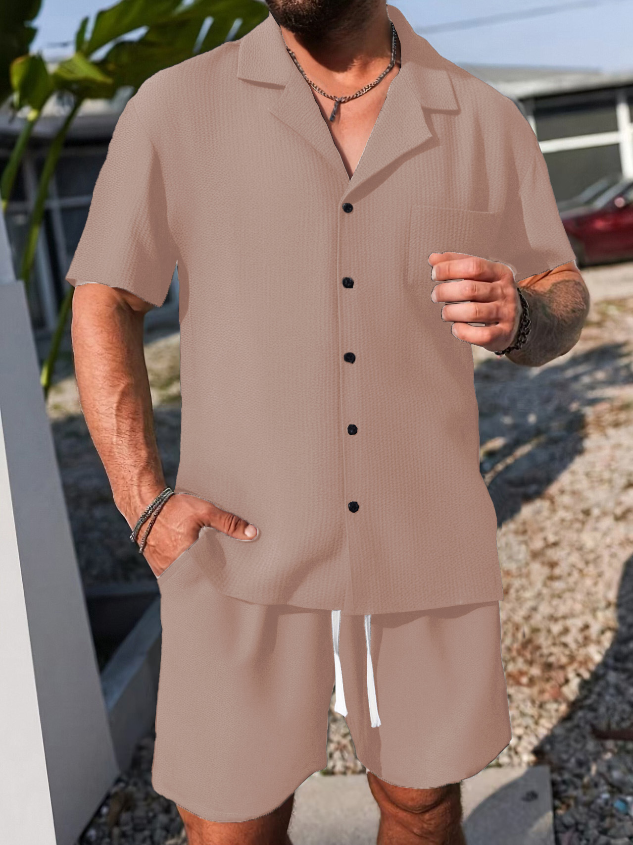 여름 신제품 AliExpress 유럽과 미국의 국경 간 남성 폴로 캐주얼 루즈 반팔 반바지 솔리드 컬러 스포츠 슈트스토어 가기
