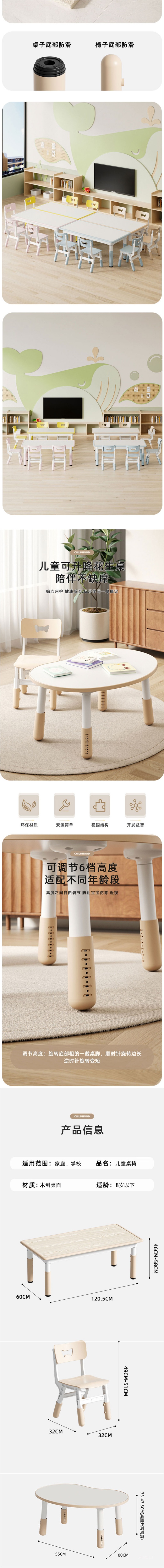 • 로그 컬러 어린이 땅콩 테이블 80*55CM + 리프트 의자