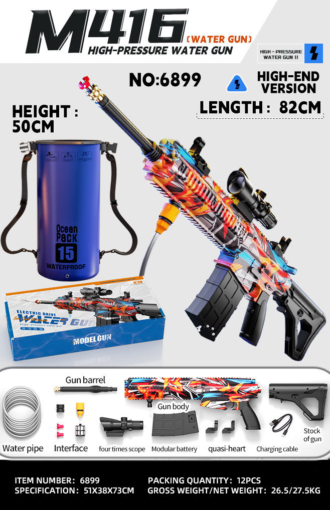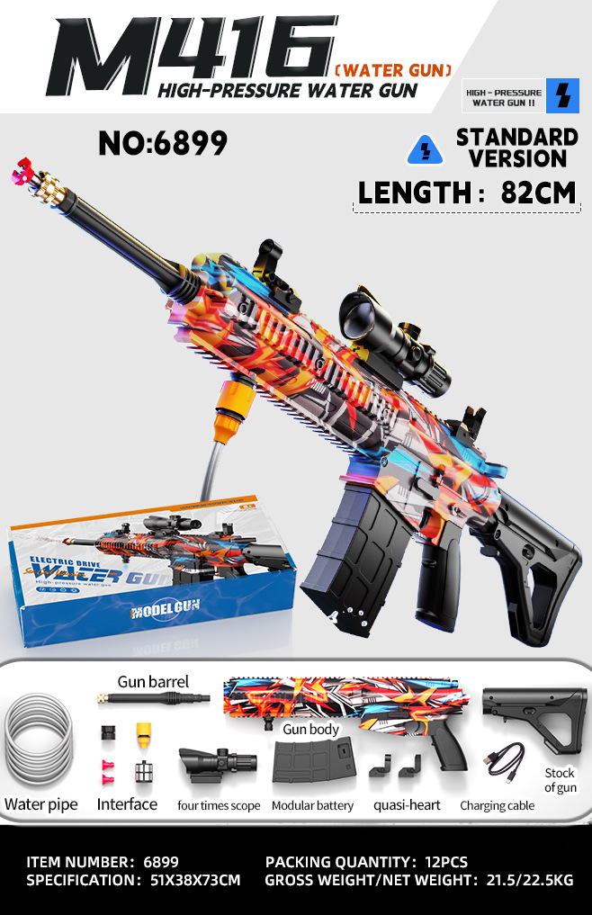 • 컬러 박스 버전 - M4 전기 물총에는 외부 물병이 기본으로 제공됩니다.