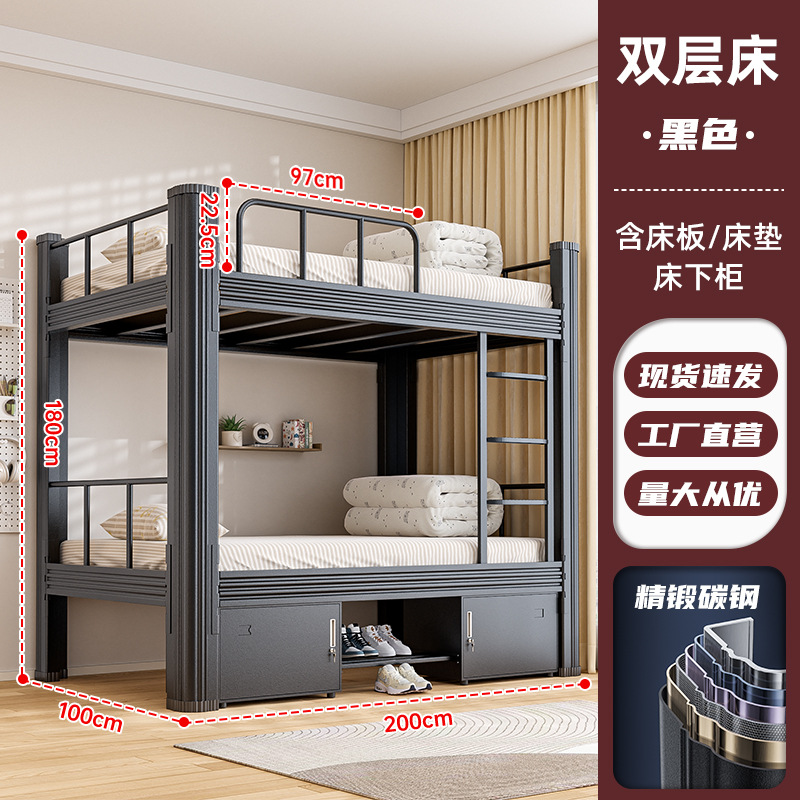 • 특후탄소강 이중층 무광블랙 1.2m폭 [침대판+매트리스+침대 밑 수납장 포함]