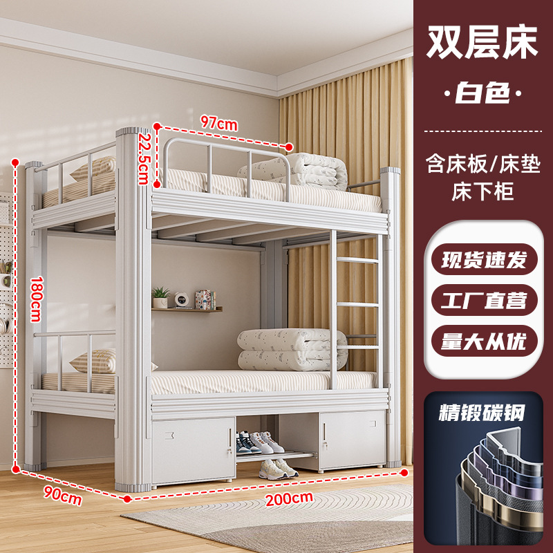 • 특후탄소강 이중층 무광 흰색 1.2m 와이드 [침대판+매트리스+침대 밑 수납장 포함]