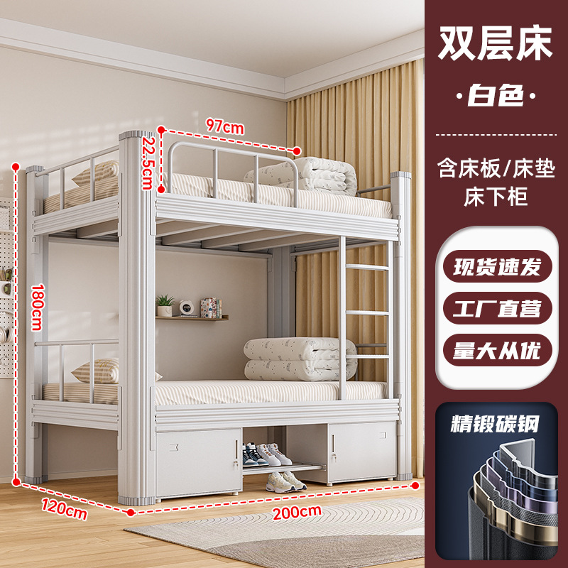 • 매우 두꺼운 탄소강 단층 무광 흰색 1.2m 폭 [침대판 + 매트리스 + 침대 밑 캐비닛 포함]