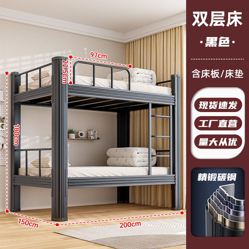 • 특후탄소강 이중층 무광블랙 1.5m폭 [침대판+매트리스+침대 밑 수납장 포함]