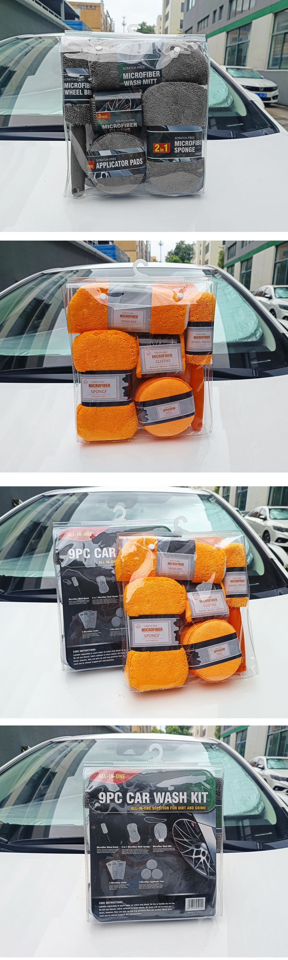 자동차 세차 및 청소 9종 세트, 자동차 닦는 수건, 가정용 세차 장갑, 수건, 걸레, 왁싱 스펀지, 휠 브러쉬