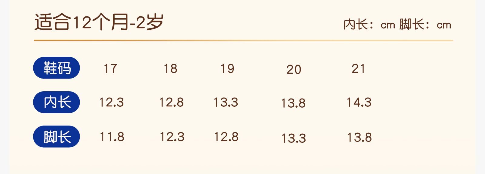• 21码内长14.3CM适合脚长13.8CM左右