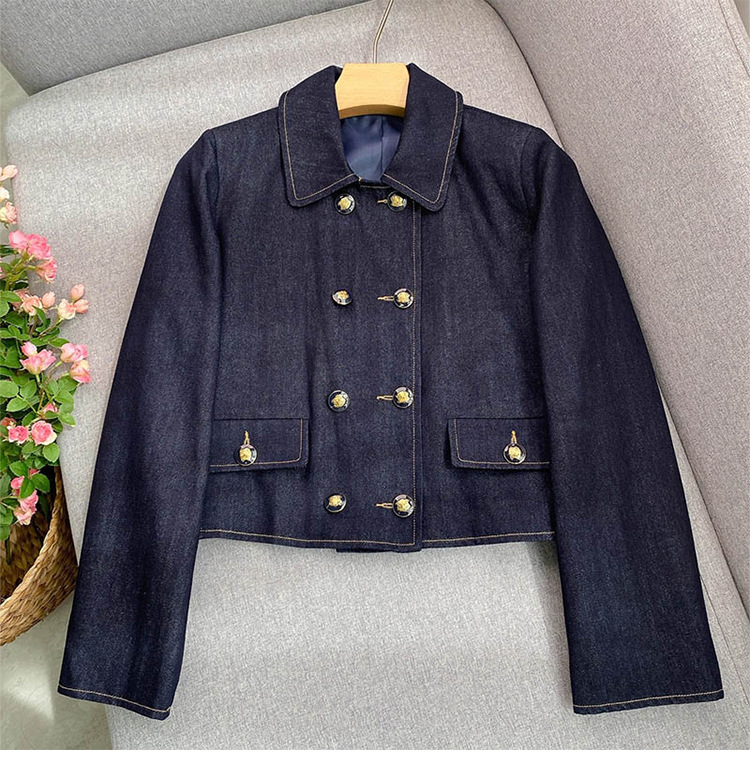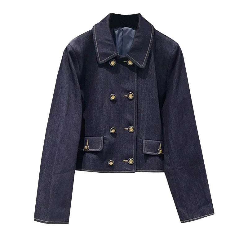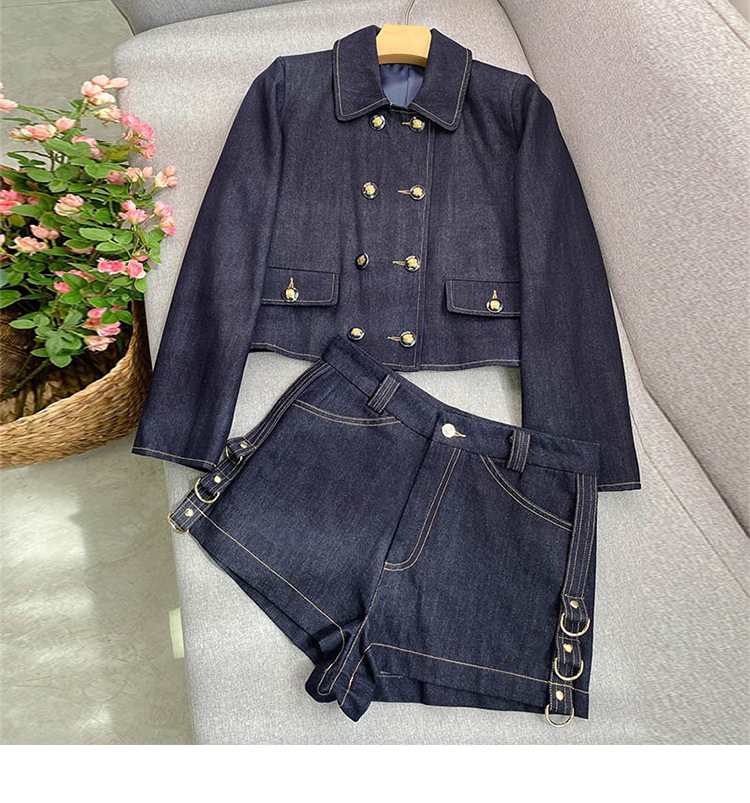 프렌치 S 홈 2025 초가을 신작 데님 재킷 + 반바지 + 스커트 더블 브레스트 재킷 플리츠 스커트스토어 가기