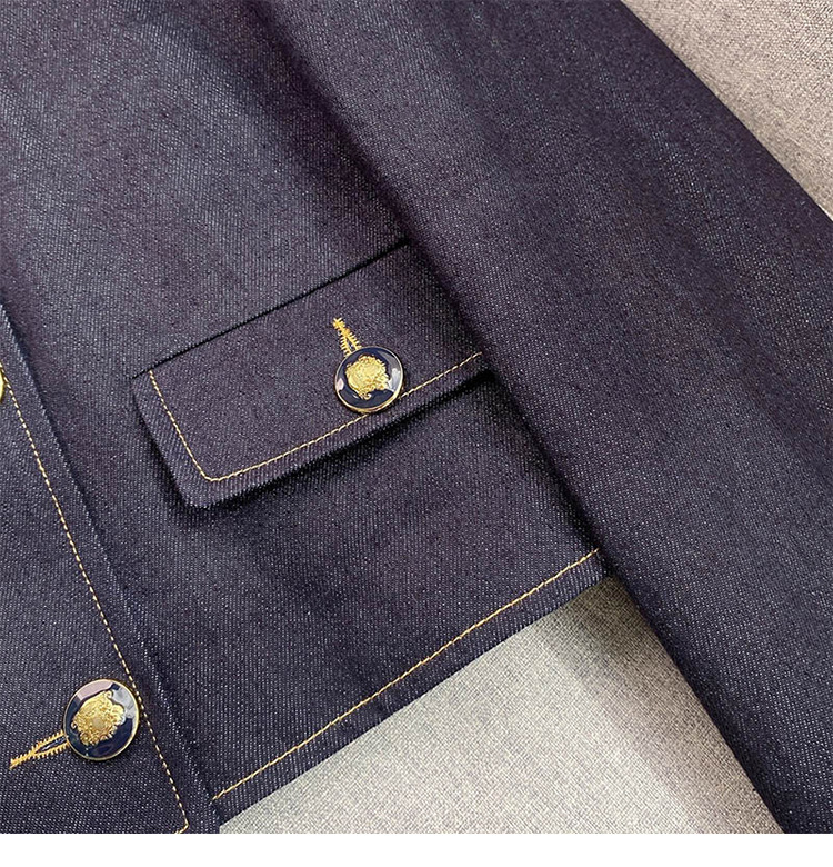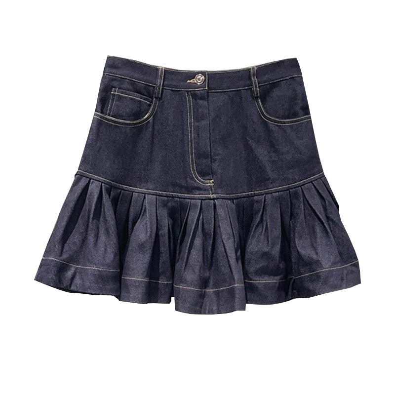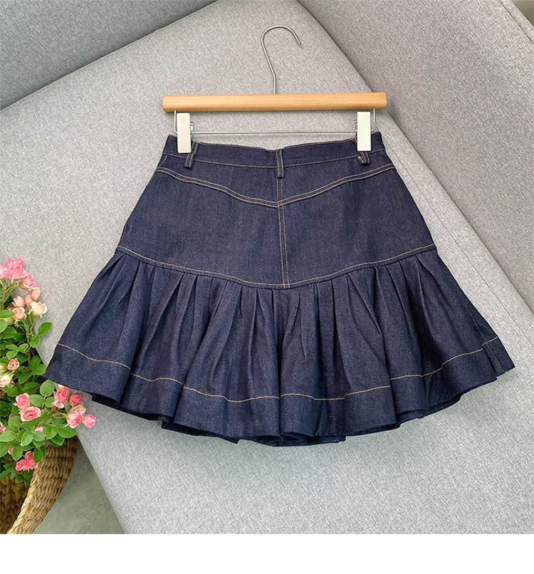 프렌치 S 홈 2025 초가을 신작 데님 재킷 + 반바지 + 스커트 더블 브레스트 재킷 플리츠 스커트