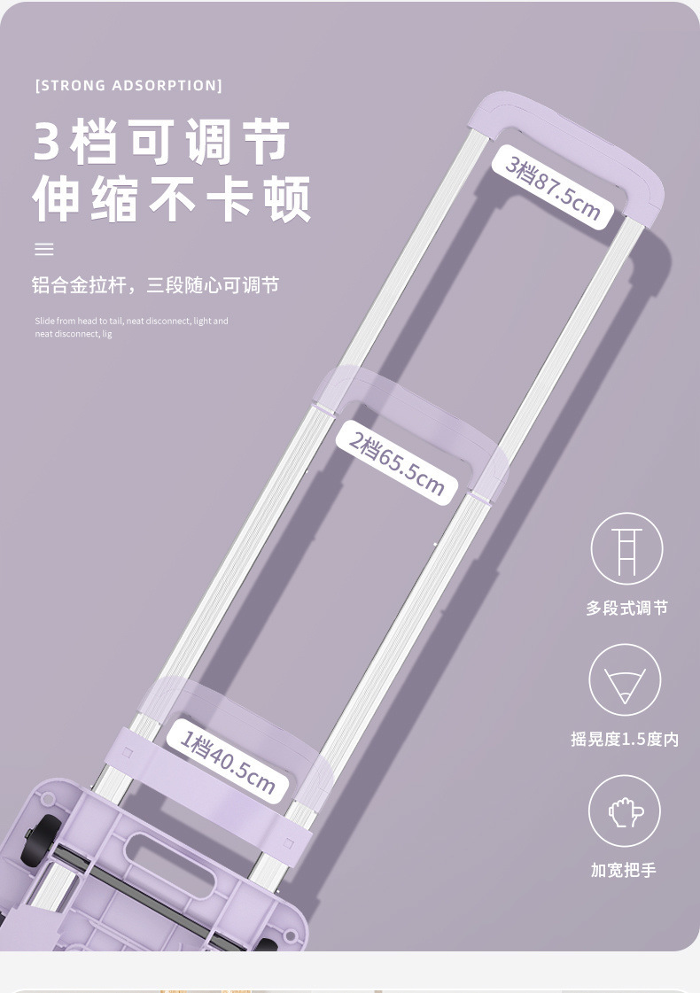 • 업그레이드된 알루미늄 폴 4륜 보라색 3단 조절