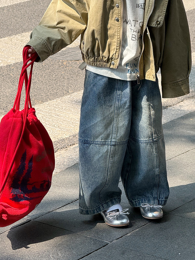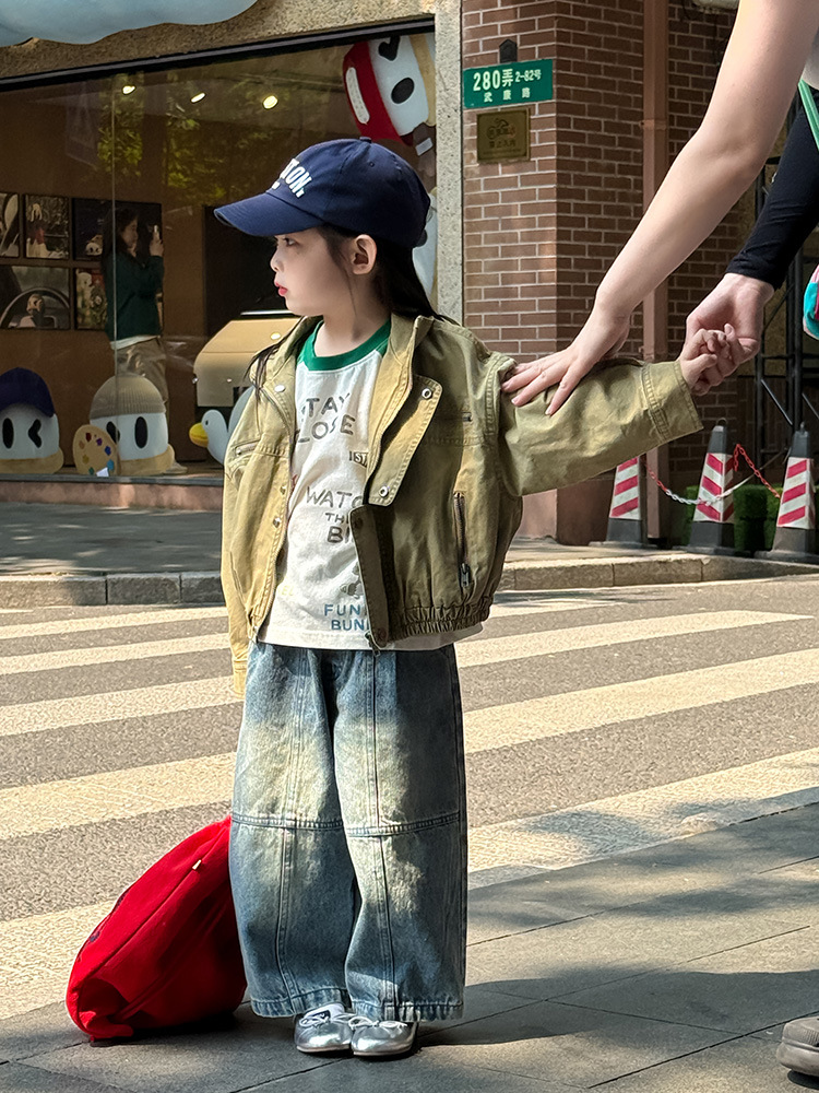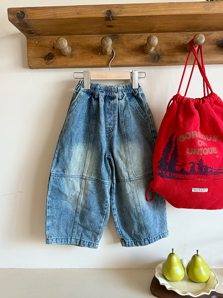 어린이용 화이트 데님 팬츠 2025 가을 신상 일본 및 한국 스타일 남녀 공용 루즈핏 데님 바지스토어 가기