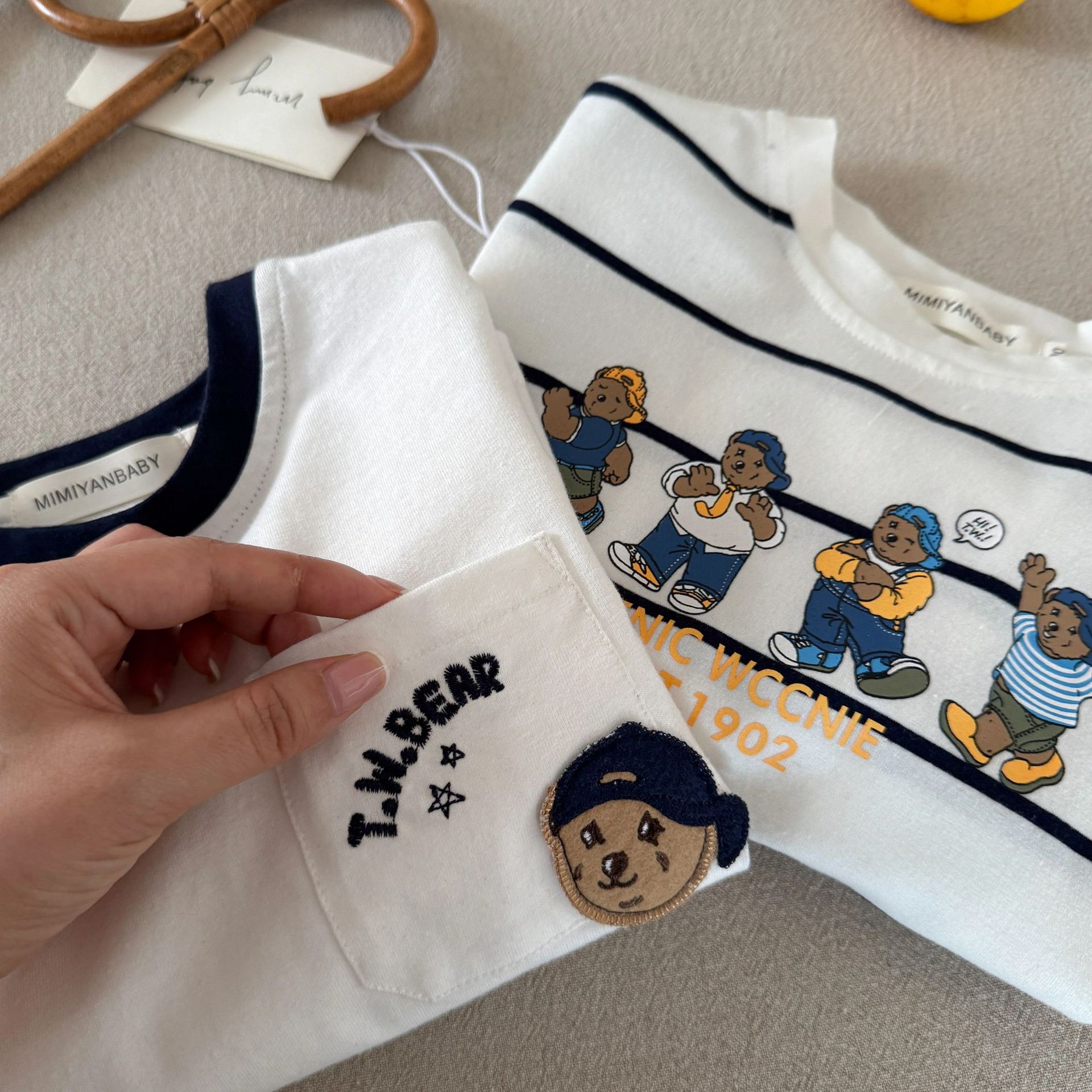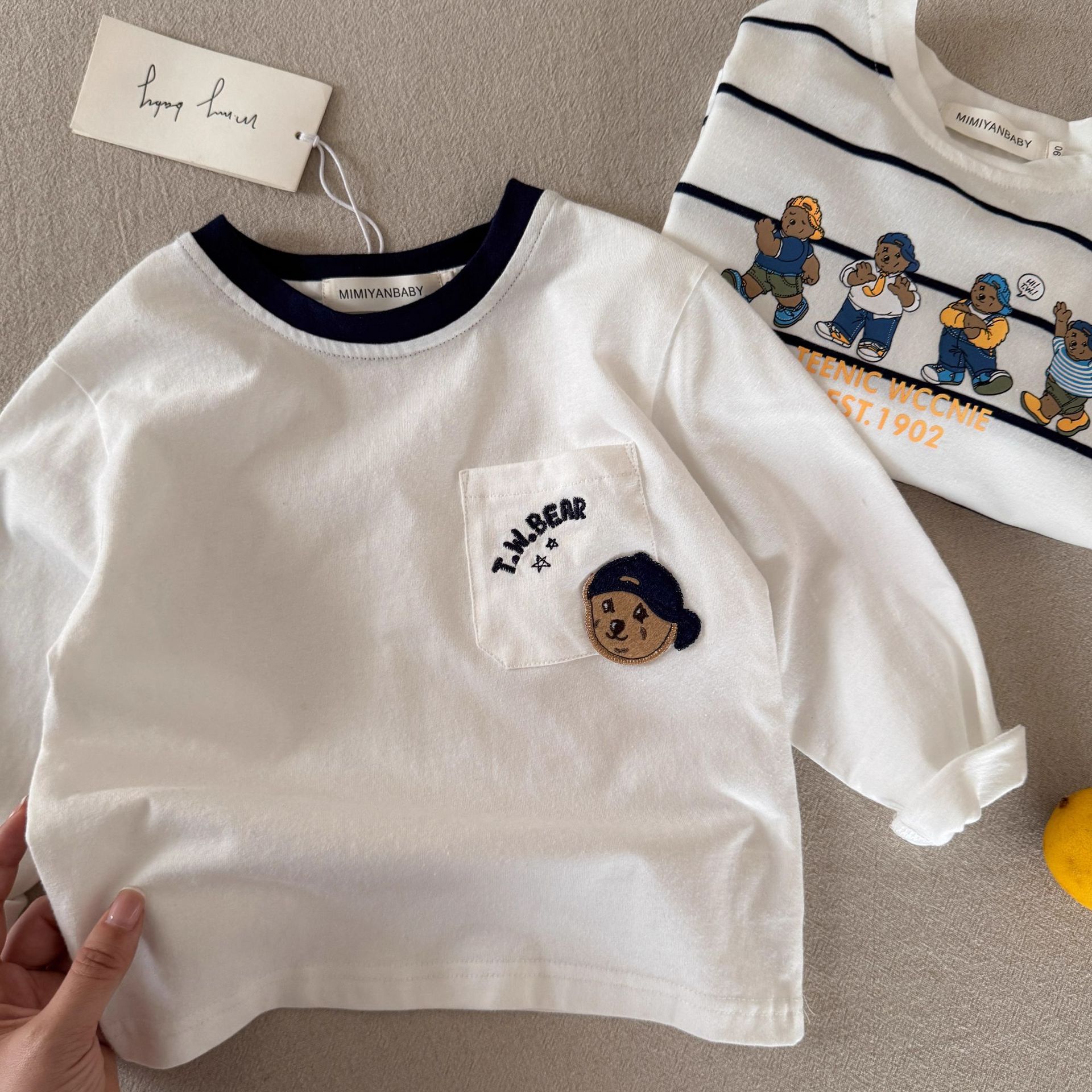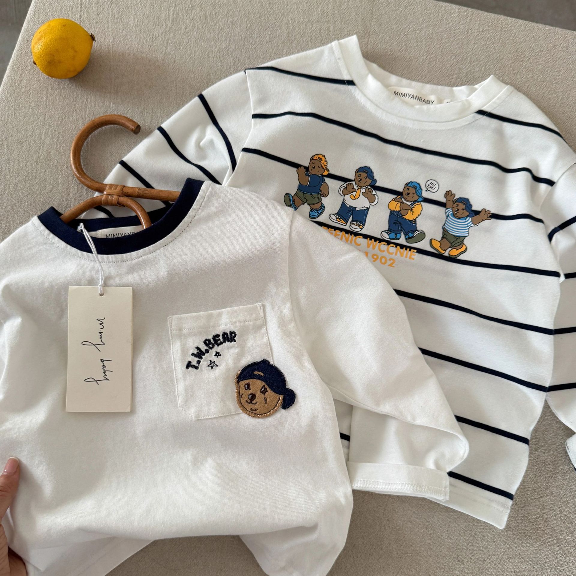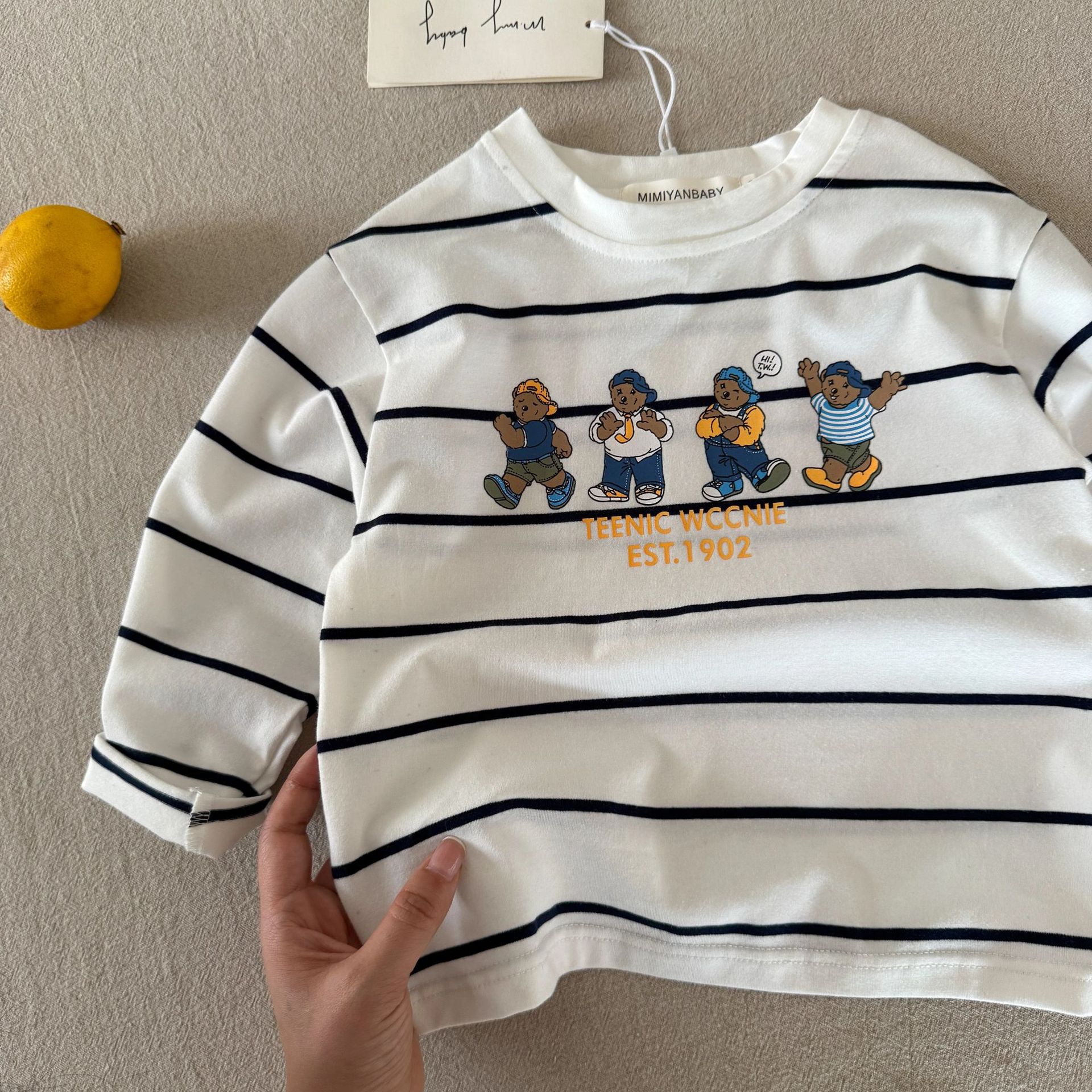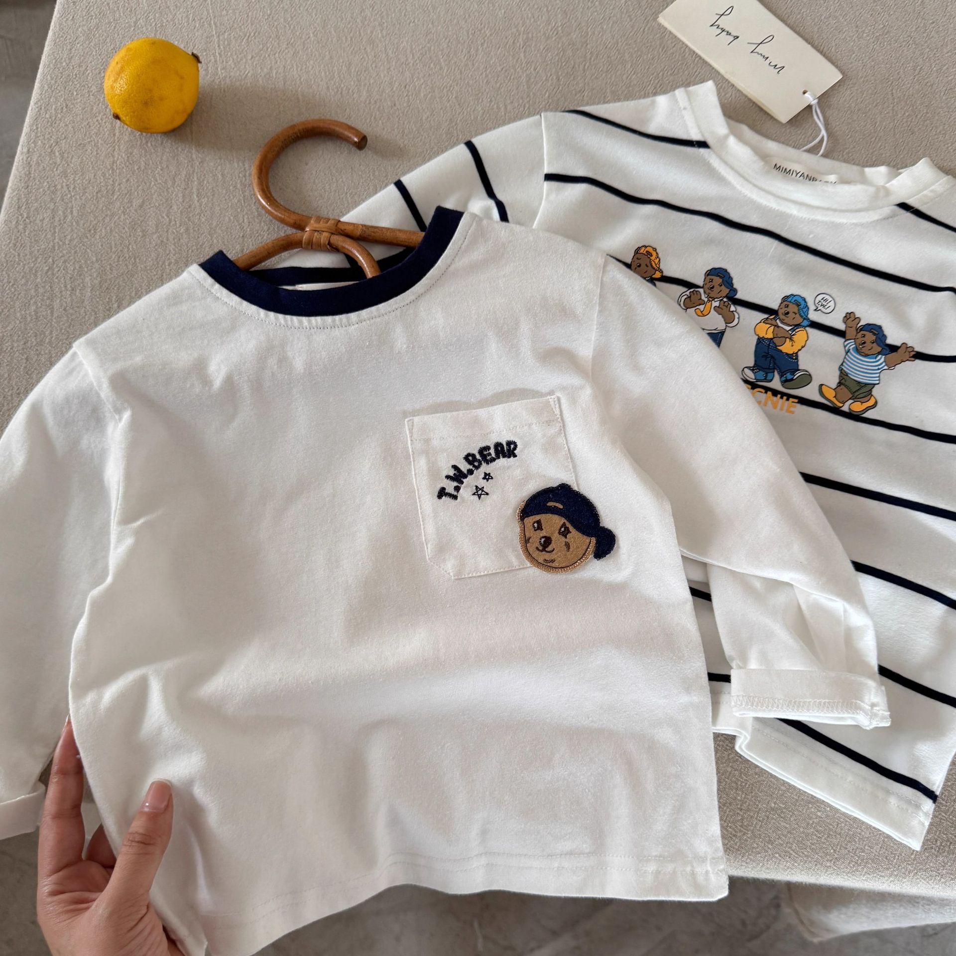 린린마 아동용 긴팔 티셔츠 2025 가을 만화 곰돌이 아기 유아 패션 이너웨어 도매스토어 가기