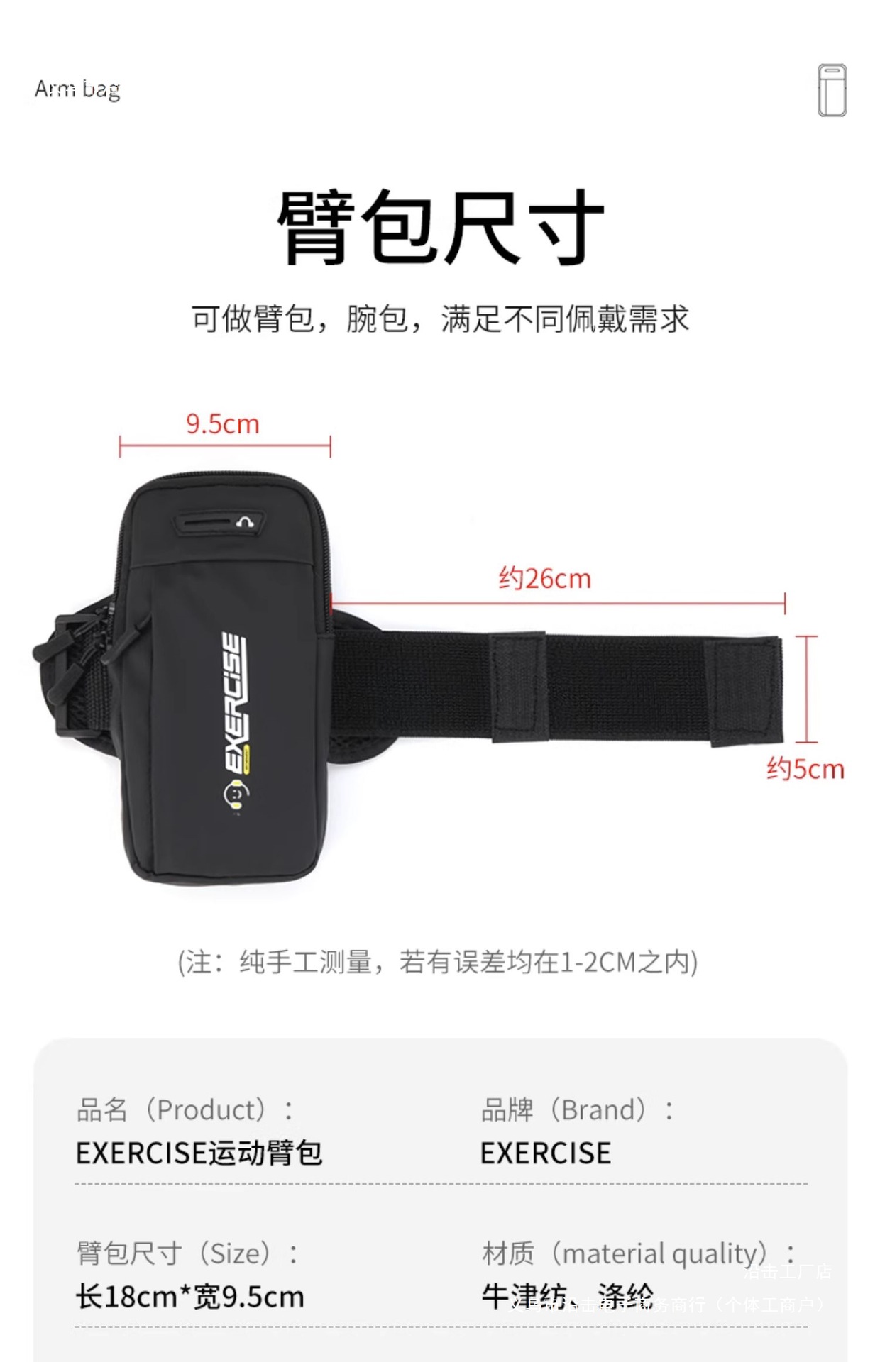 휴대폰 수납 가방, 스포츠 팔 가방, 야외 달리기 손목 가방, 가볍고 방수, 아침 달리기 피트니스 장비, 남녀 공통