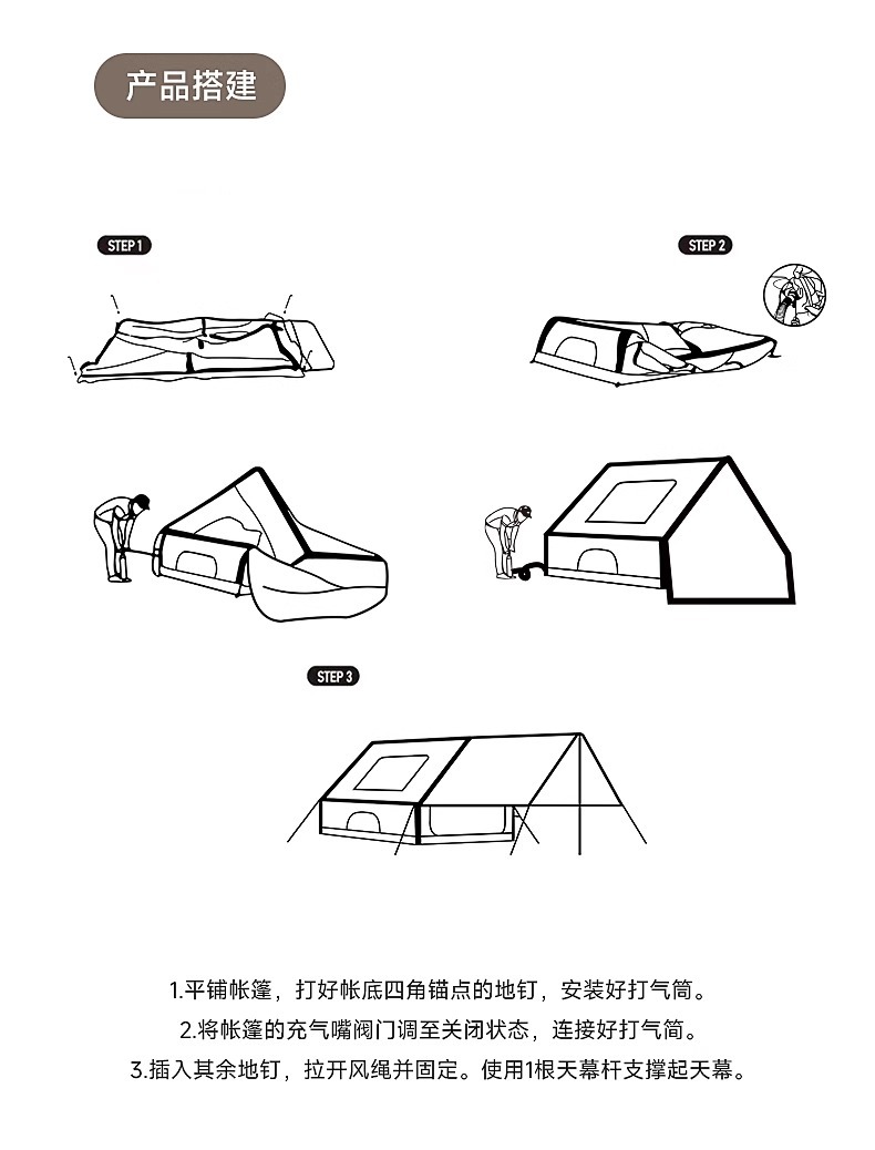 • [업그레이드된 캐노피 모델] 옥스포드 천 [6.3+6.3M²] 캐노피 별이 빛나는 하늘 모델 + 자동 공기주입식 침대 + 전동 펌프