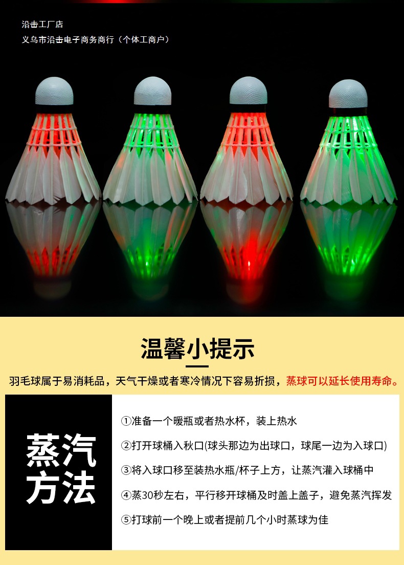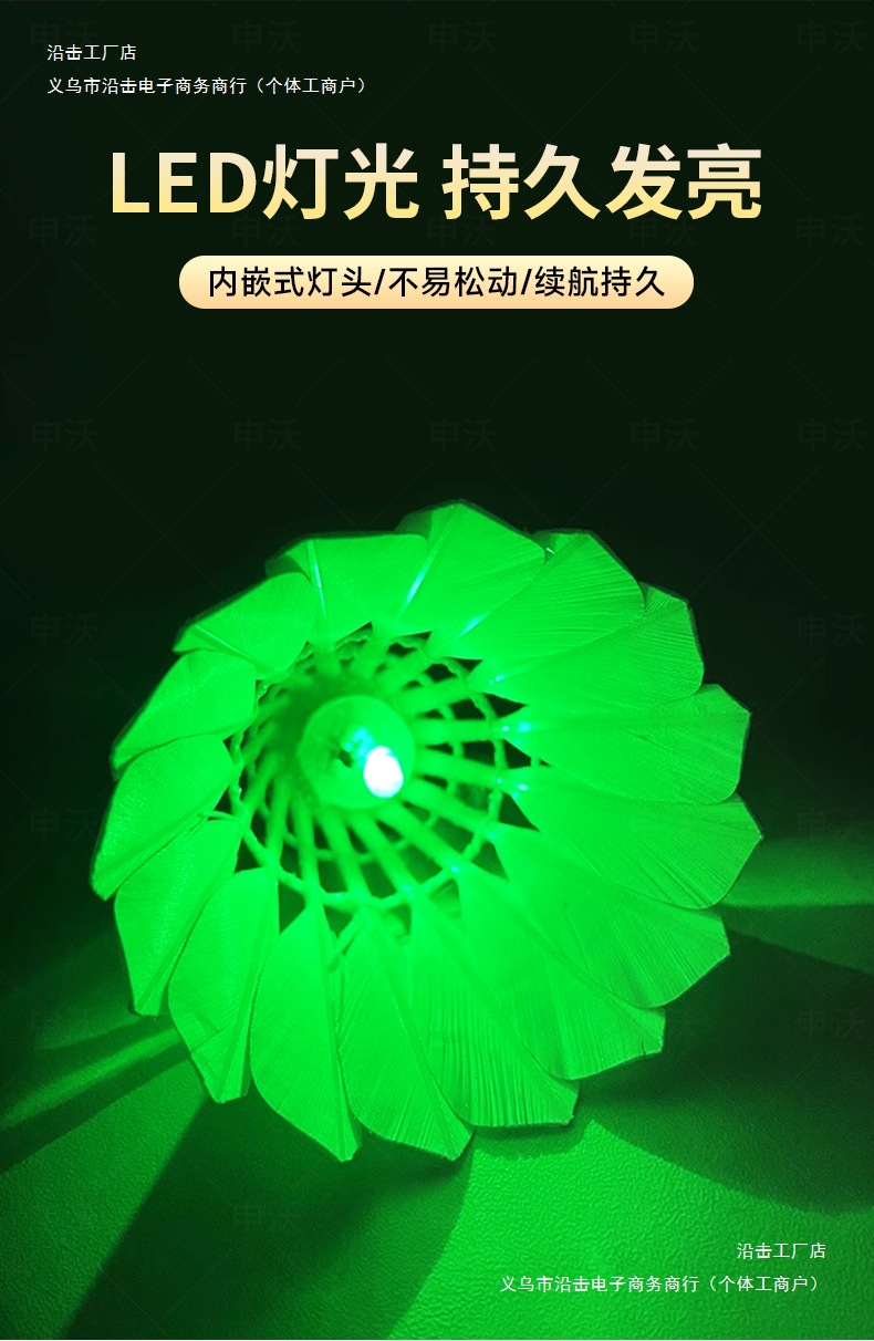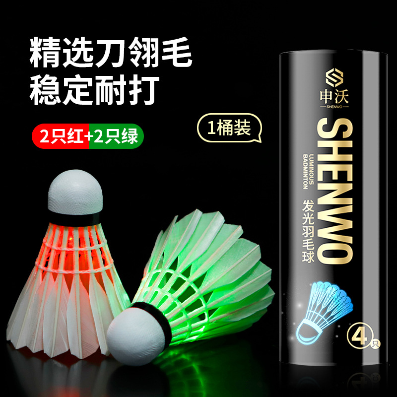 • 야광 거위털 공 [깃털 스타일/플라스틱이 아닌 진짜 배드민턴 공] [녹색 불빛 4개]