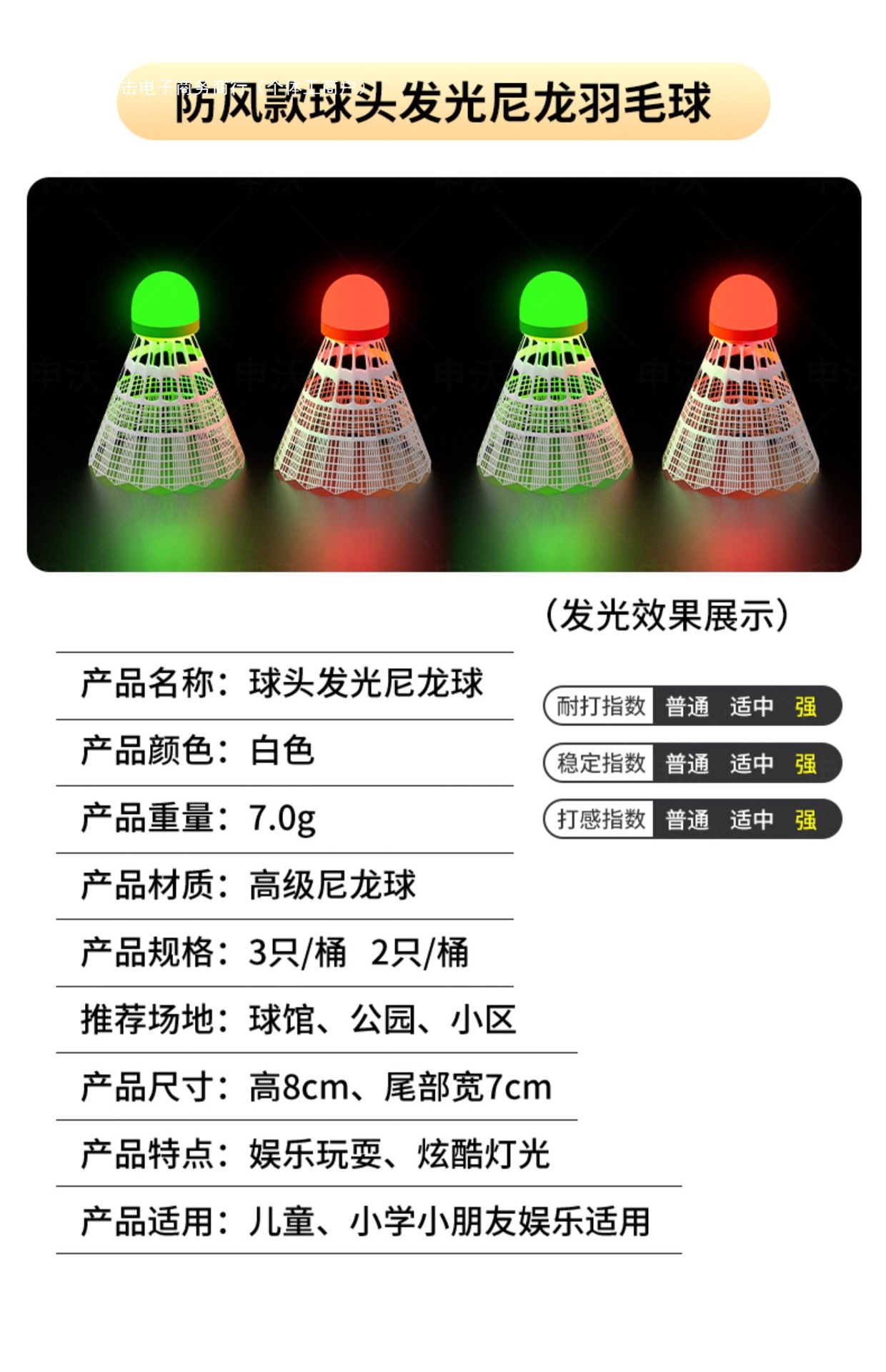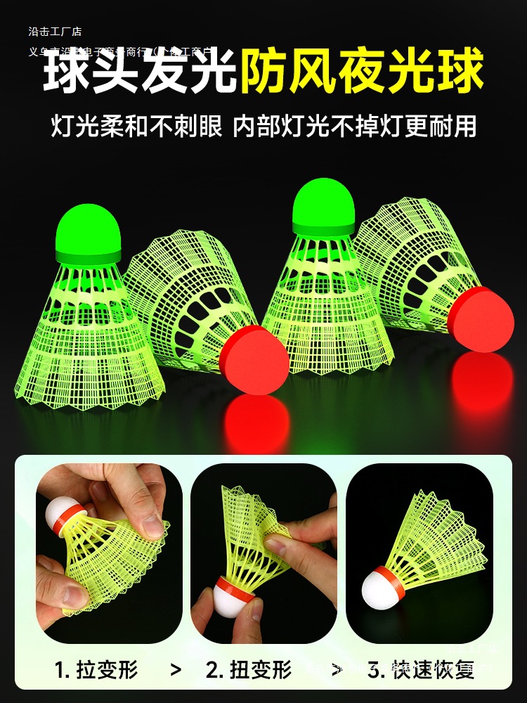 야간 조명 배드민턴 플라스틱 방풍 야외 훈련 야외 나일론 야간 형광 발광 거위 깃털 공 세트스토어 가기