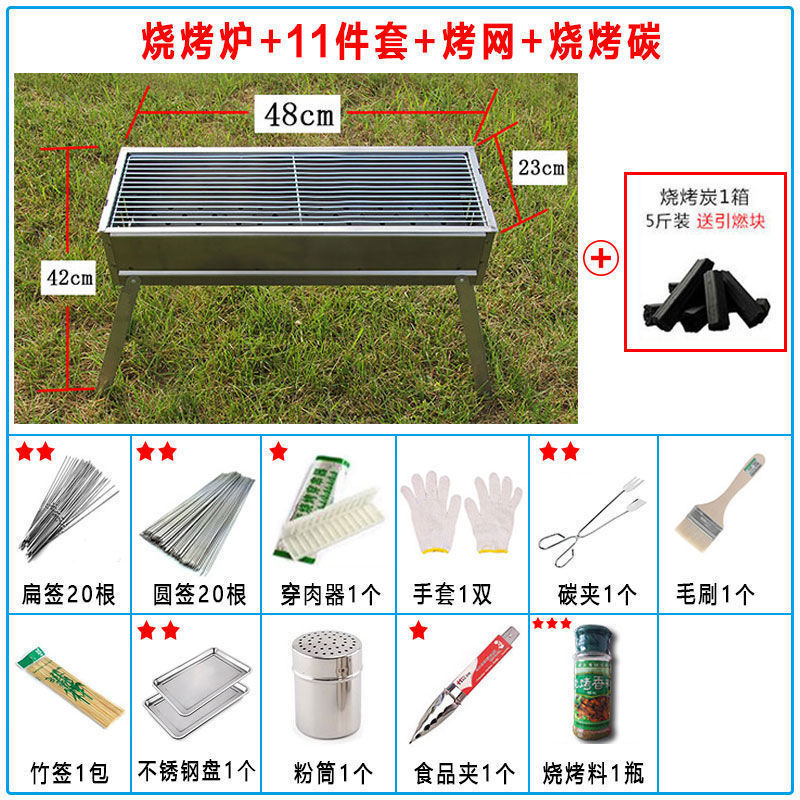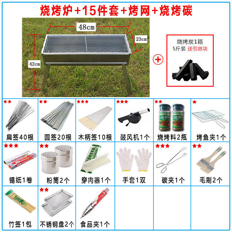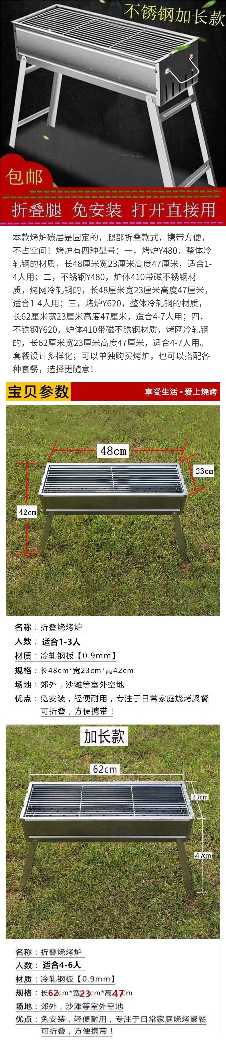 바베큐 그릴 가정용 접이식 휴대용 바베큐 그릴 야외 숯 피크닉 그릴 가족 바베큐 꼬치 그릴 상자