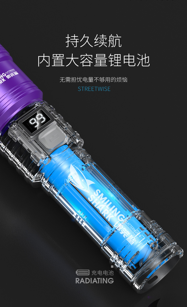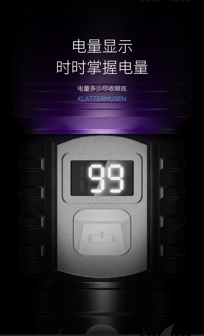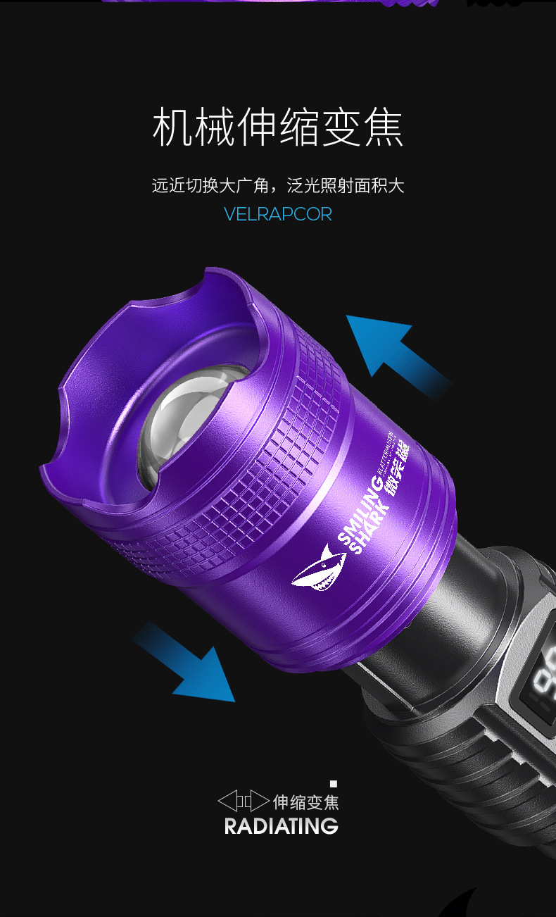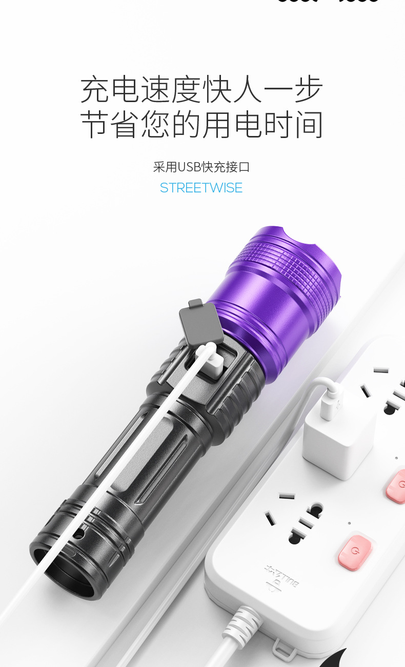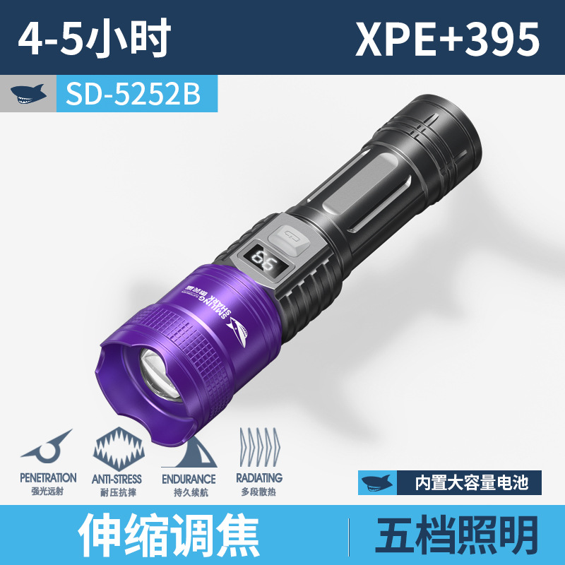 새로운 야외 스콜피온 특수 손전등 보라색 빛 이중 광원 충전식 디지털 전기 디스플레이 강한 빛 손전등