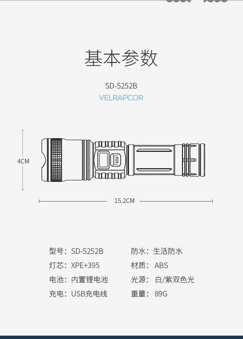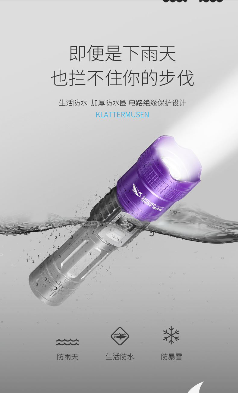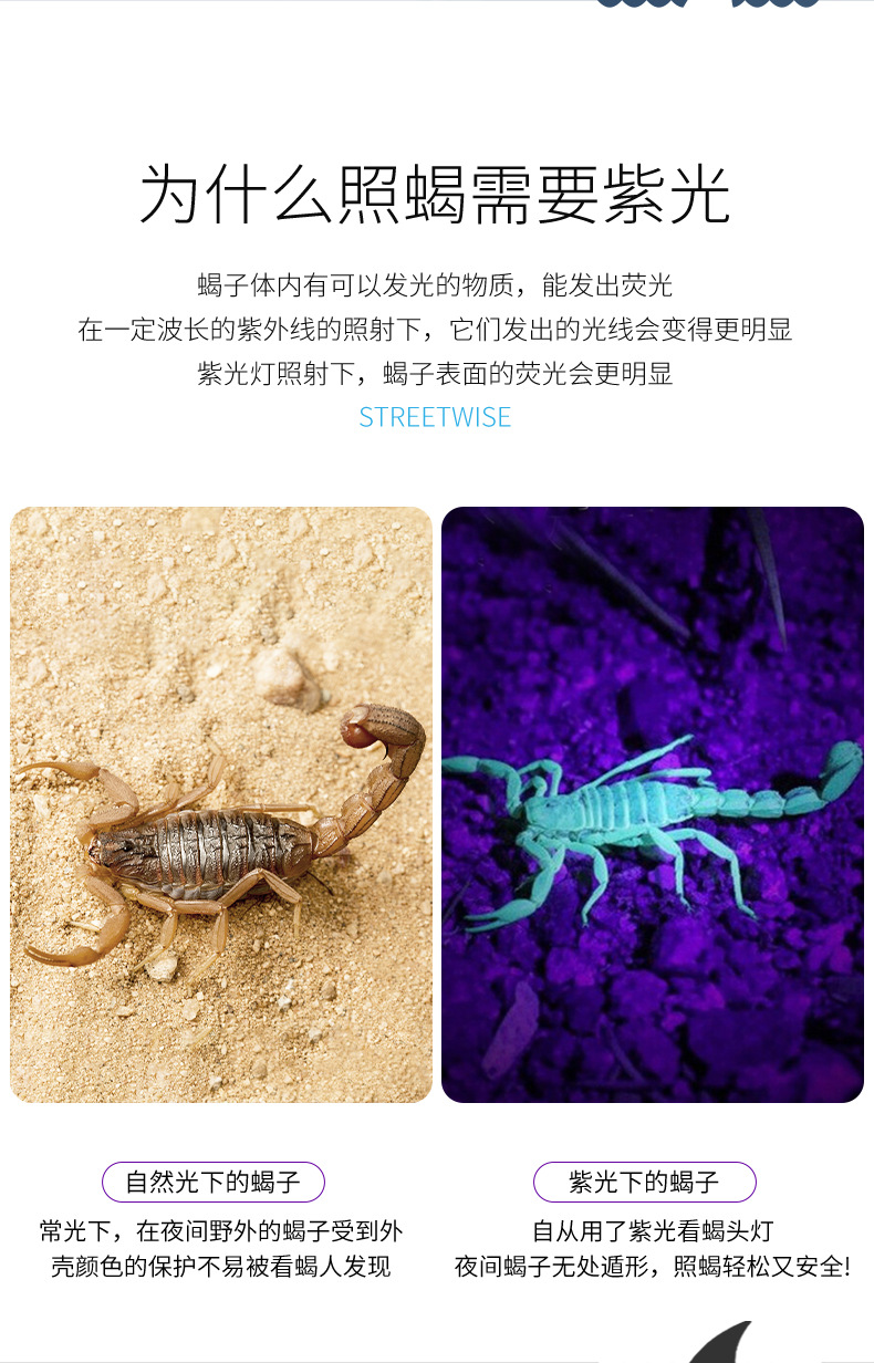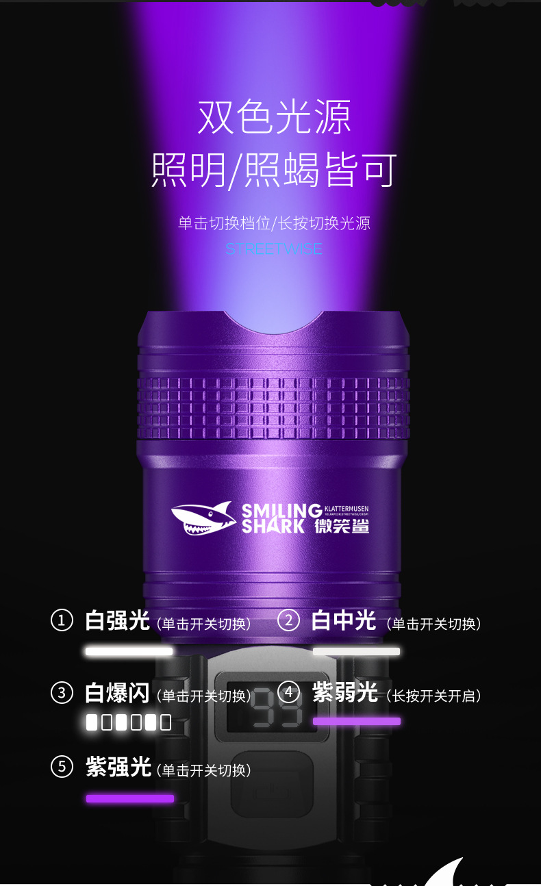 새로운 야외 스콜피온 특수 손전등 보라색 빛 이중 광원 충전식 디지털 전기 디스플레이 강한 빛 손전등