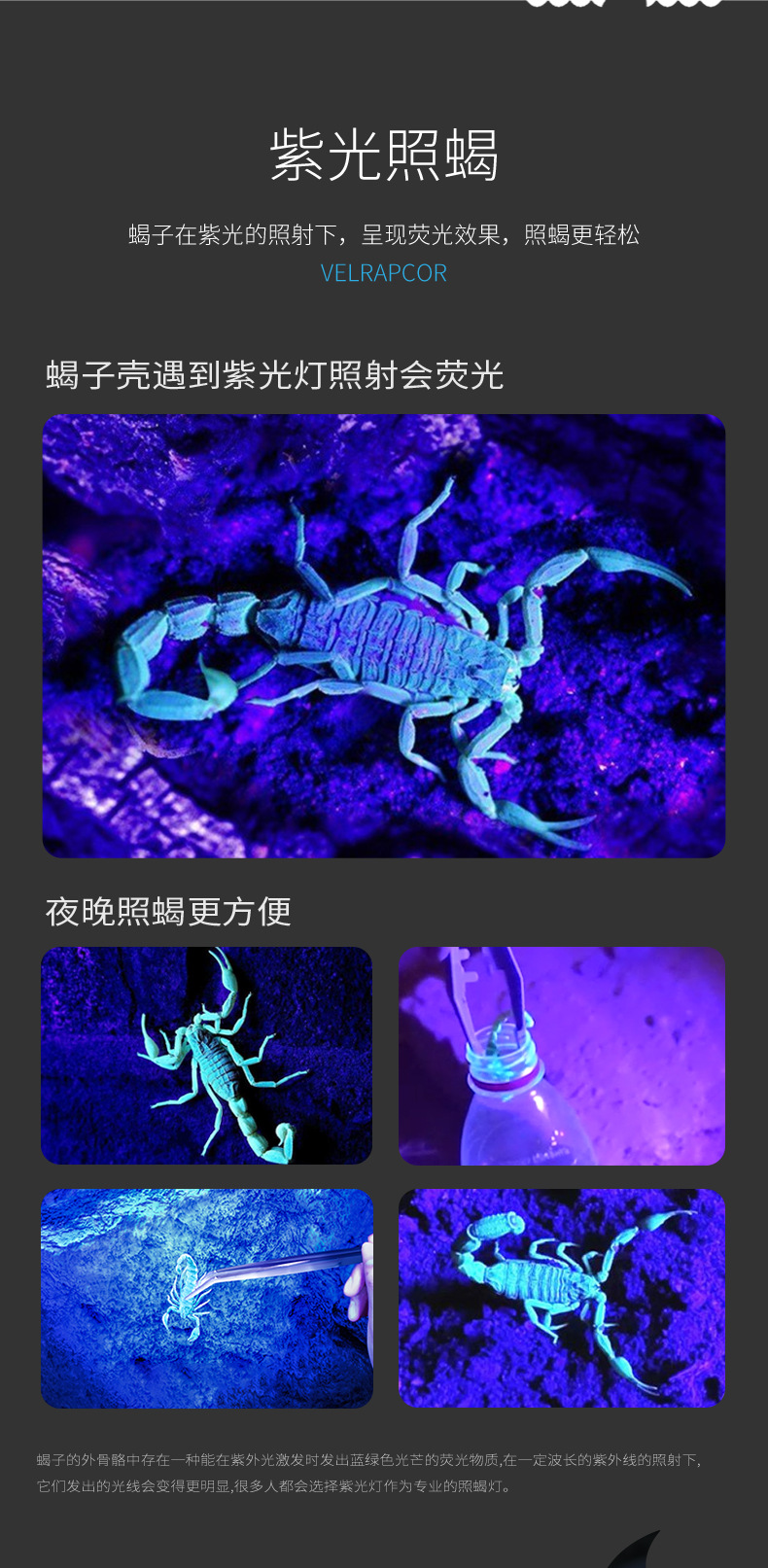 새로운 야외 스콜피온 특수 손전등 보라색 빛 이중 광원 충전식 디지털 전기 디스플레이 강한 빛 손전등스토어 가기